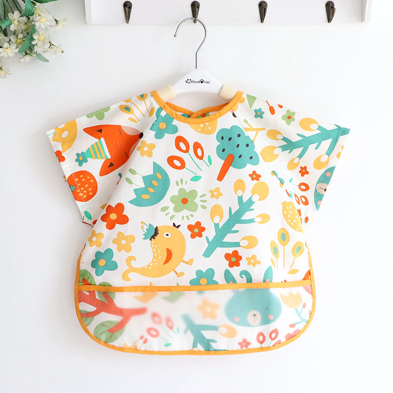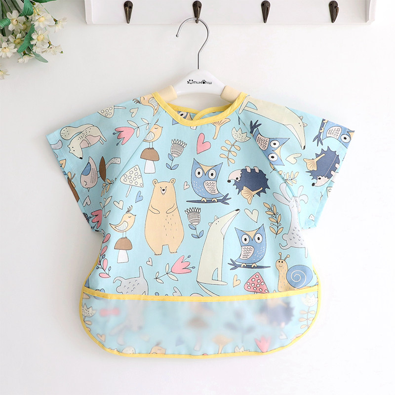 Meritocratic Printed Boy Girl Child Cartoon Bib Waterproof Baby Eating Surrounding Pocket Large Walled Pocket for eating and surrounding clothes