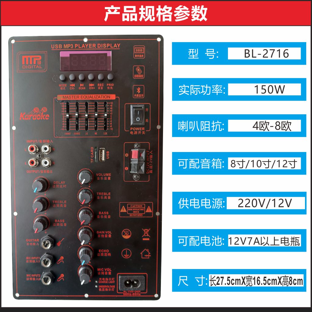 12V battery high-power amplifier board 10 inch 12 inch pull rod audio square dance motherboard 220V charging amplifier board