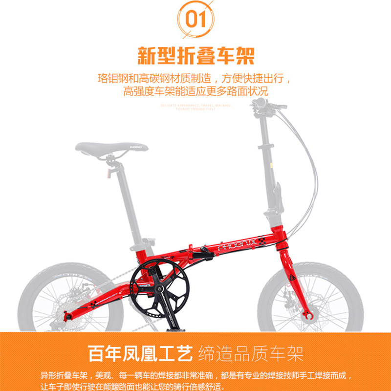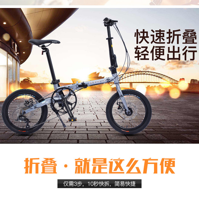 Phoenix folding bicycle 9-speed ultra-light portable small mini-teen student male and female adult bicycle