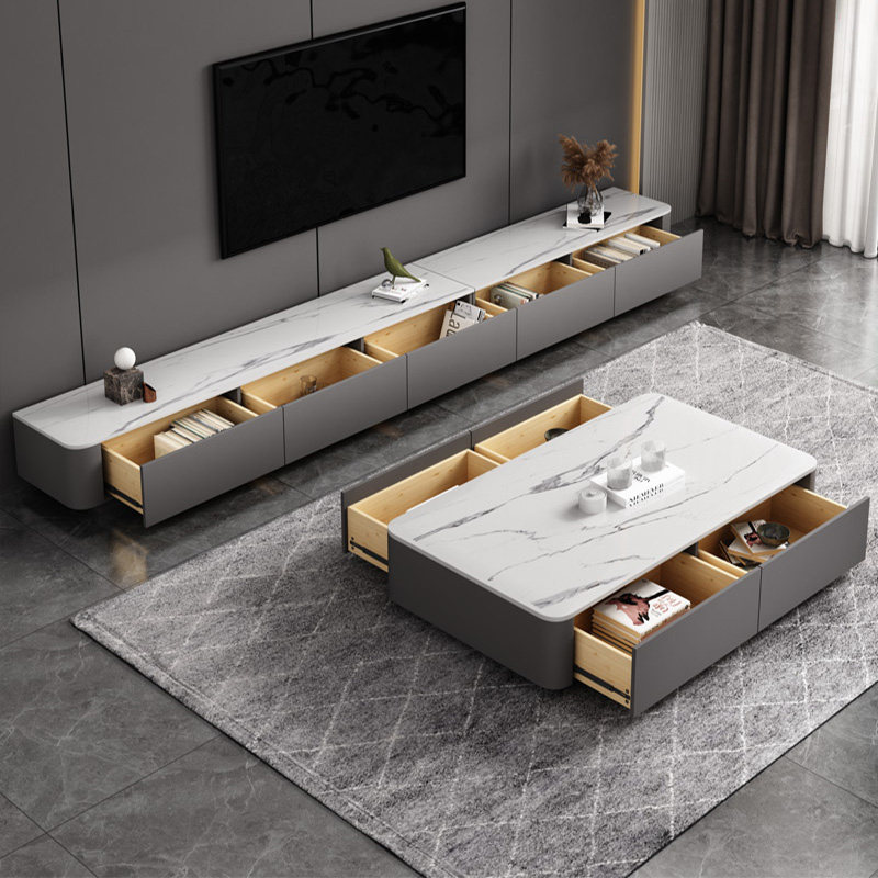 Italian Rockboard Tea Table TV Cabinet Composition Minimalist Modern Living-room Furniture Extremely Simple Ultra Slim version Baking Lacquered Terrace Cabinet