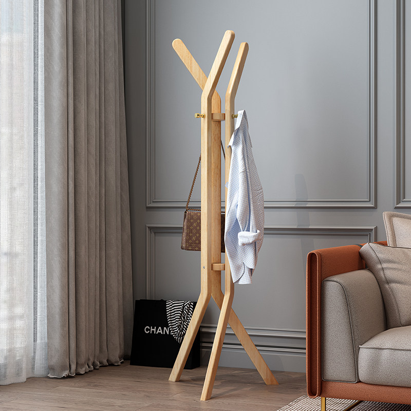 Clothes frame floor bedroom red creative hanger frame solid wood household light luxury packing rack living room single pole cloak rack