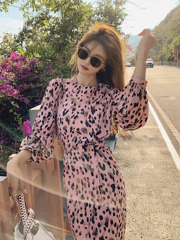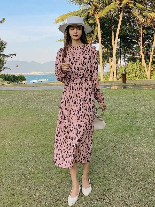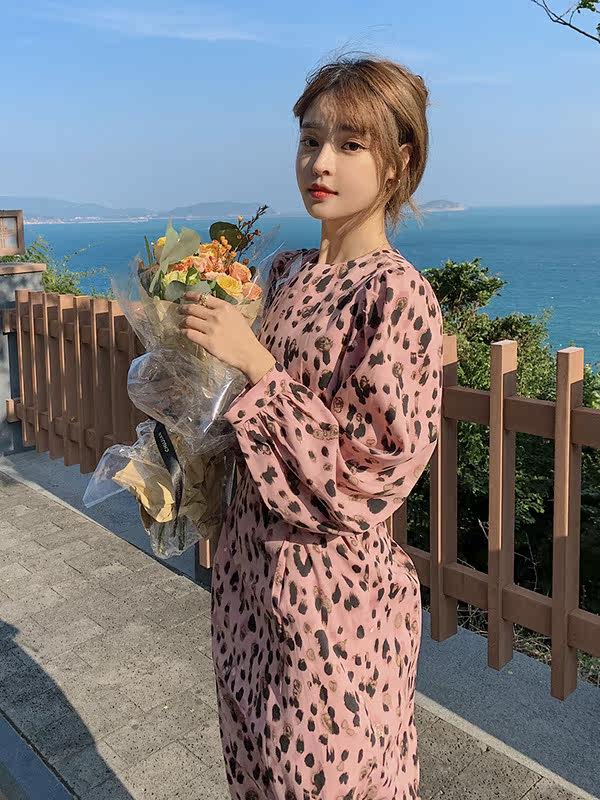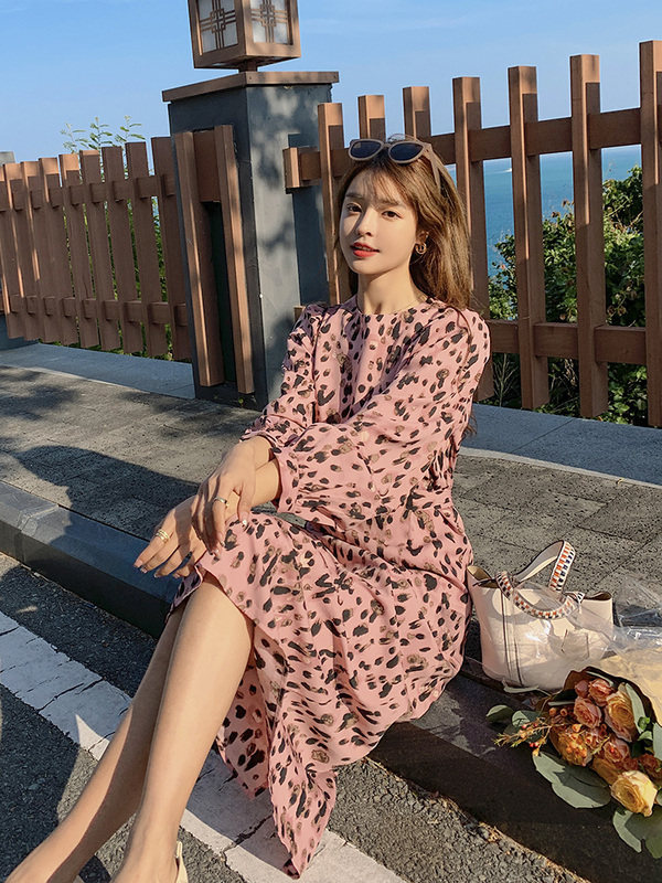 French Sandro Beytagh long-sleeved dress women's 2022 spring and autumn pink BAO WEN waist floral long skirt