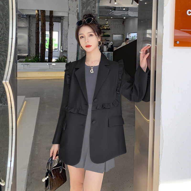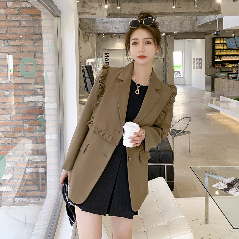 Suit jacket woman 2022 Spring and autumn new foreign style Fashion Inglém Wind Wood Ear edge High sense Little Western suit jacket