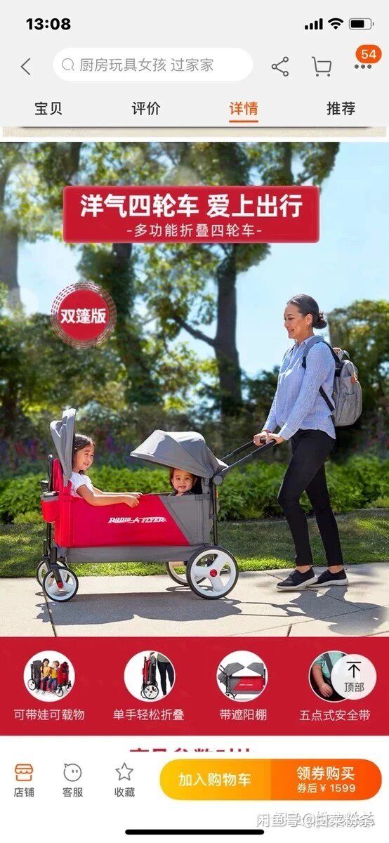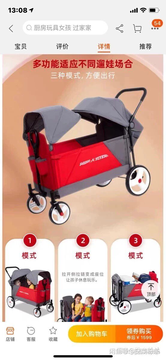 Sam Camper Radio Flyer Camper Picnic Cart Two-Child Artifact Double Canopy Baby Car 3972