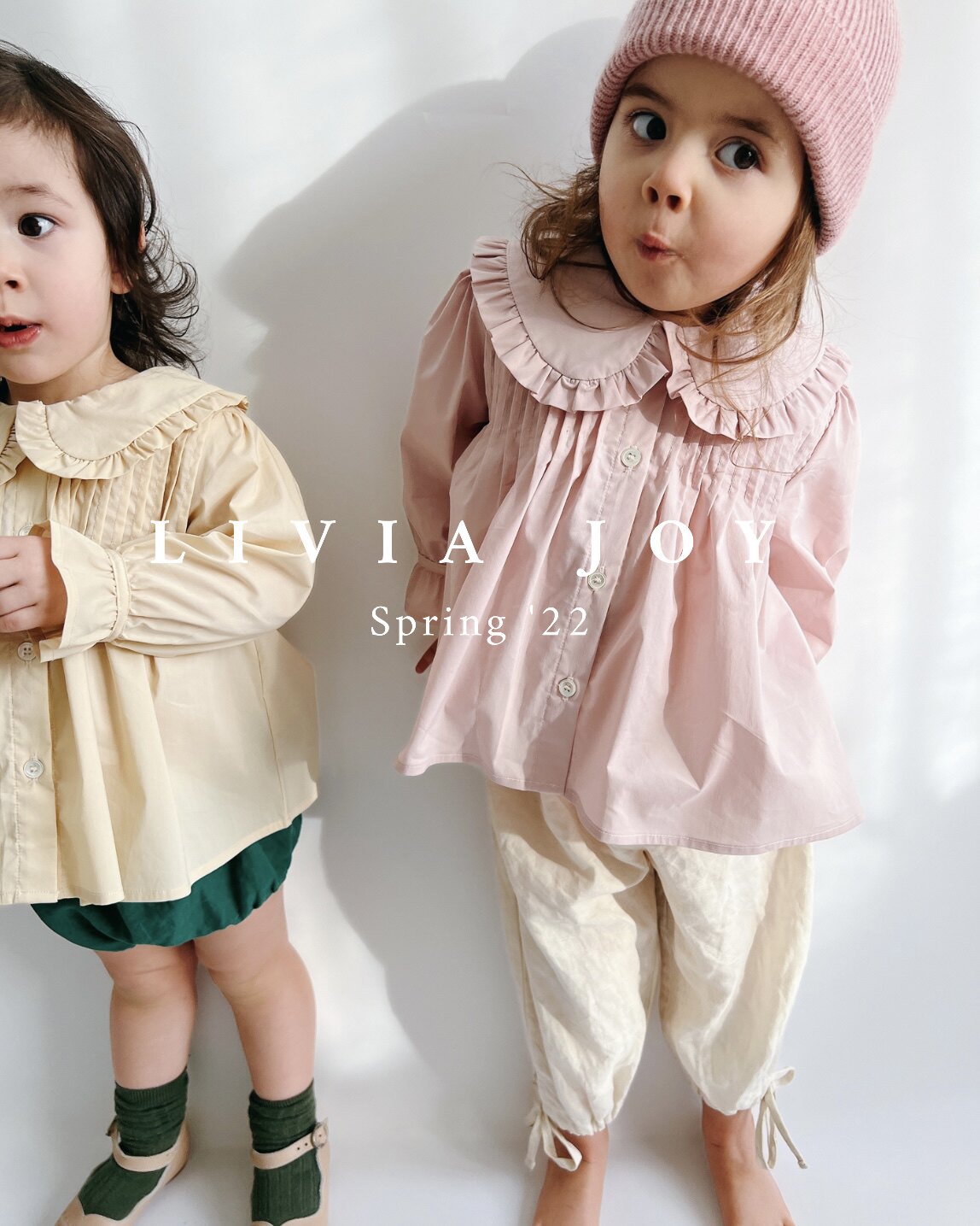 Livia Joy Spring Lace Large Lapel Long Sleeve Shirt Handmade Stripes Girls