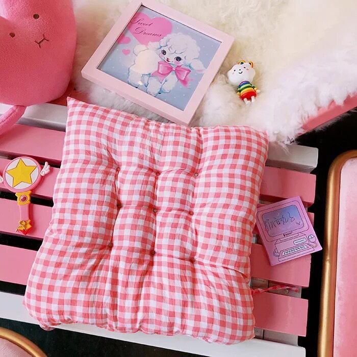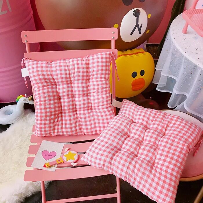 Day Ensemble Soft Cute Teenage Girl Pink Plaid Cushion Student Dorm Room Office Chair Mat Spring Thickening Soft Mat