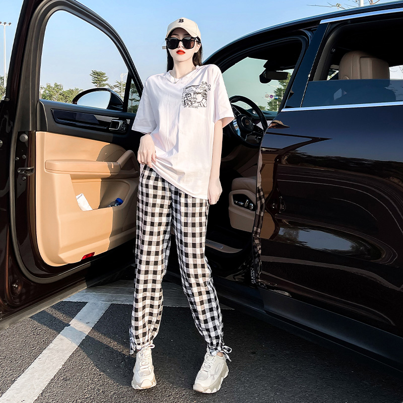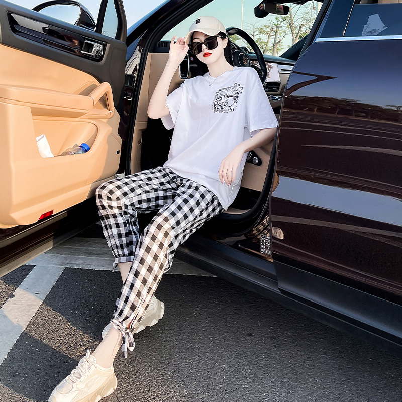 Sport T-shirt suit woman 2022 new display high-display slim short sleeve summer dress temperament Salt Department Fried Street Two Sets Thin