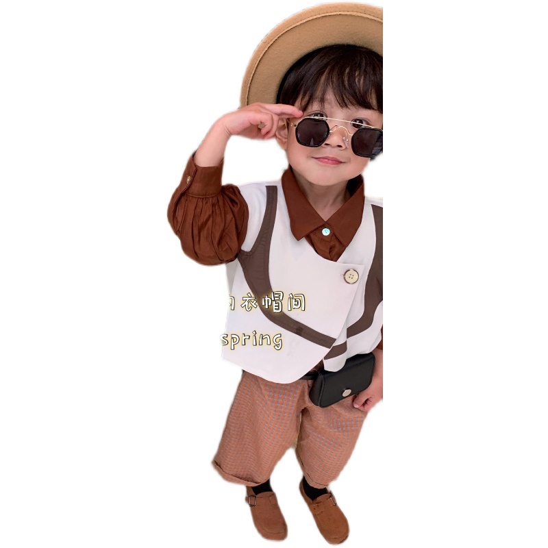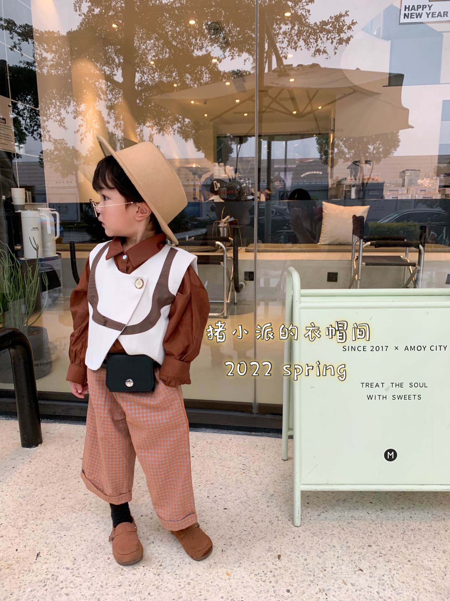 Pig Little Pie 2022 Chun Men's Baby Fitted Long Sleeve Shirt Suit Vest Plaid Trousers Suit Korean Baby Inn
