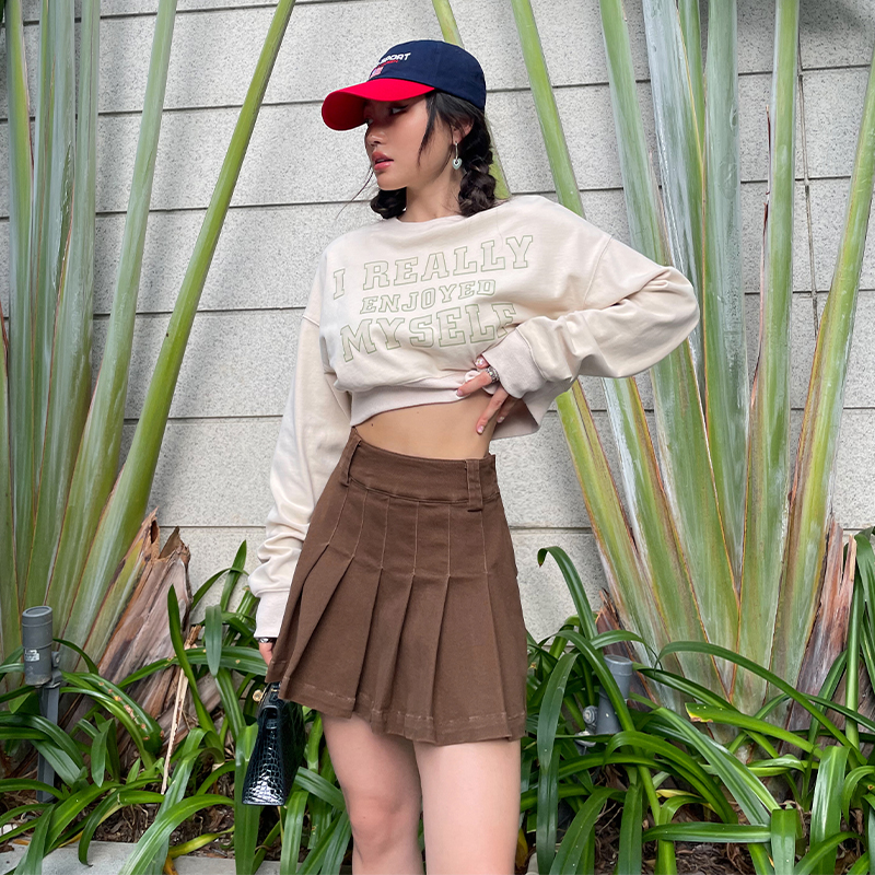 LEIYU short style hot and hot dew cord printed thick cotton T woman 2022 spring new high waist long sleeve round collar European and American ins blouses