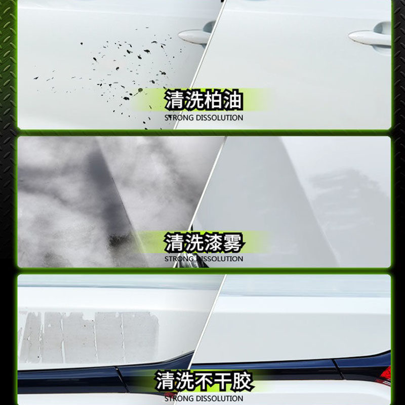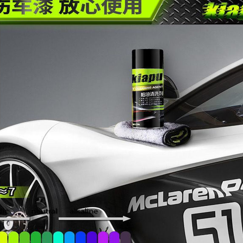 Asphalt cleaner bitumen cleaning car with white almighty powerful decontamination removal of car wash liquid outside of the paint surface