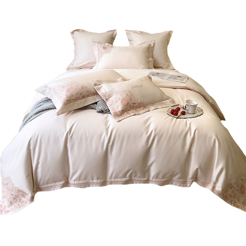 100 light extravagant advanced senses four pieces upscale pure cotton full cotton linen cover European-style embroidered long suede cotton bed pint-Taobao