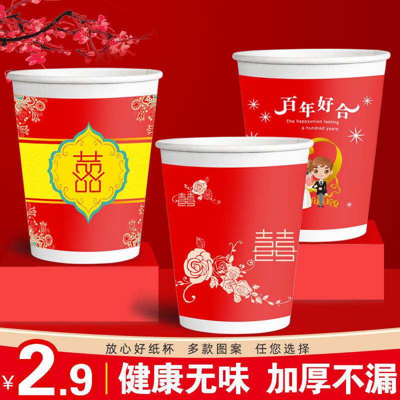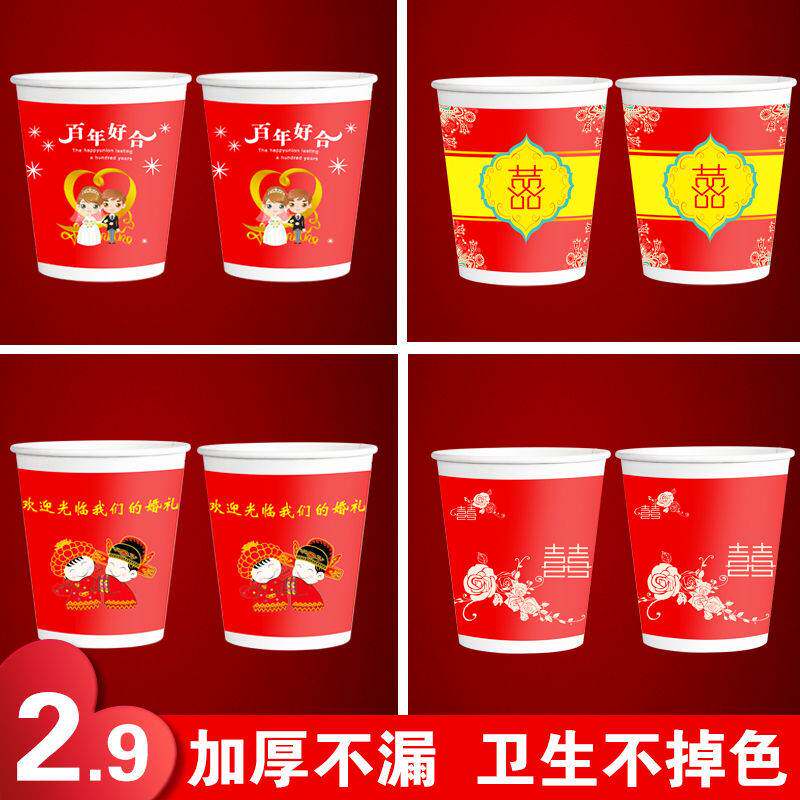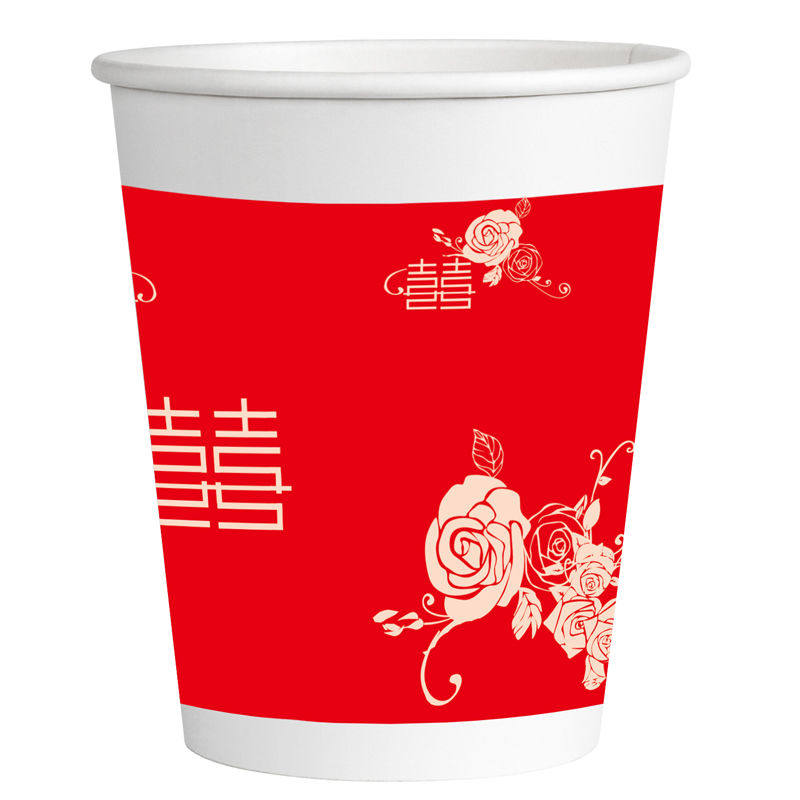 Festive paper cup disposable cup thickened wedding big red double happiness home business office tea cup