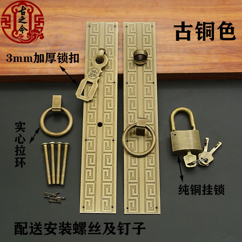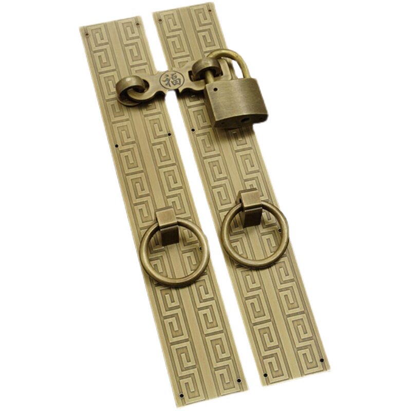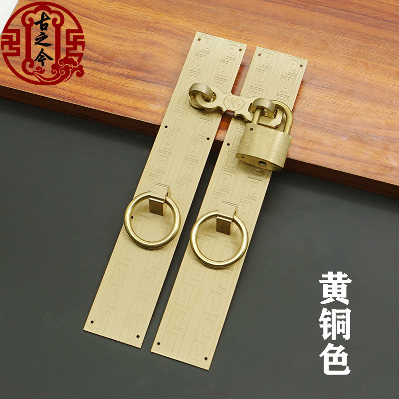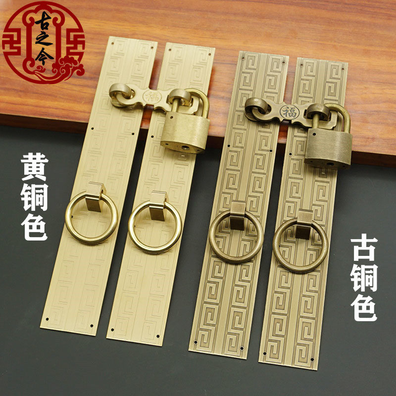 Imitation ancient pure copper back tattooe lock catch handle old folk juku gate copper handle cabinet door integral cabinet copper padlock retro handle
