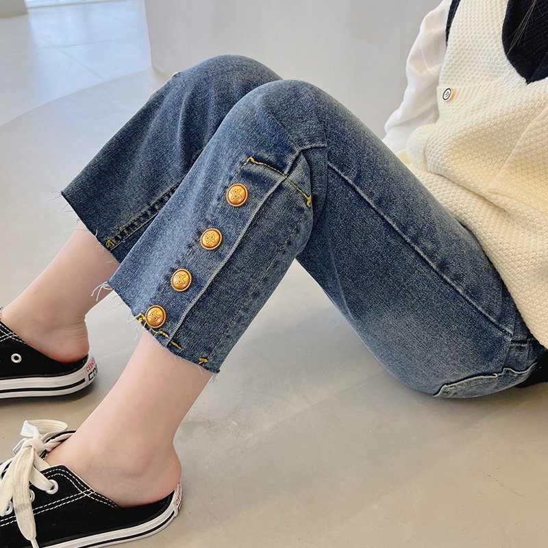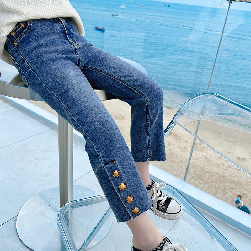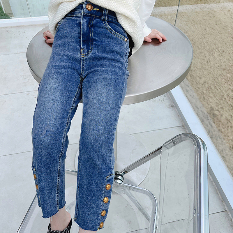 Girl Pants Spring Autumn Children Jeans Outwear Foreign Pie 2022 New Spring Dress Girl Dress Girl 90% Pants Long Pants