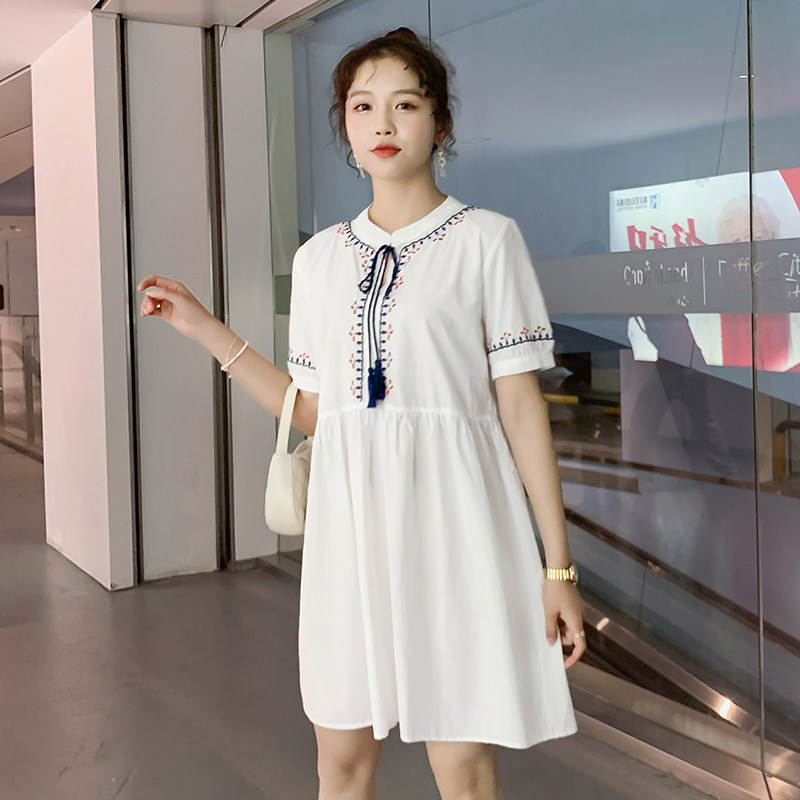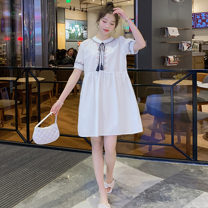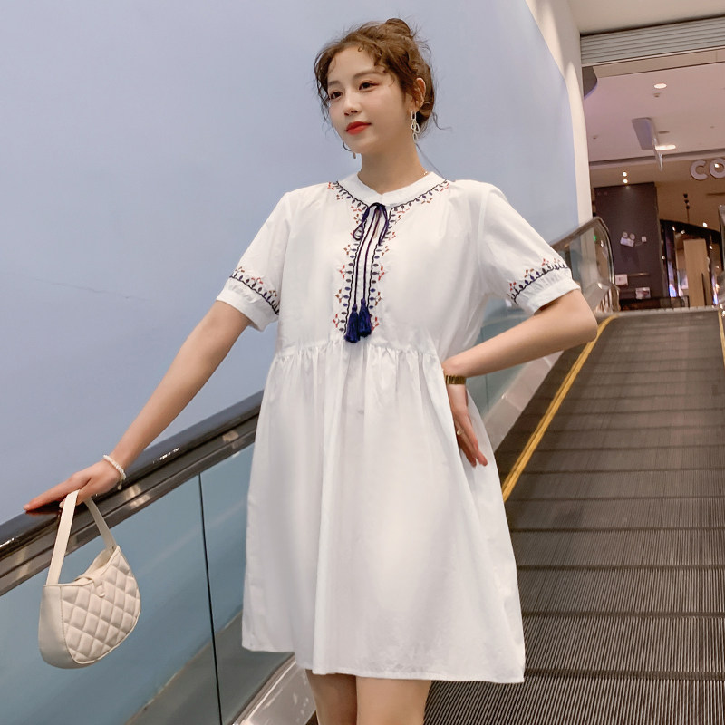 Maternity dress summer dress 2021 new fashion small fresh embroidery r short-sleeved maternity dress loose large size pregnant woman