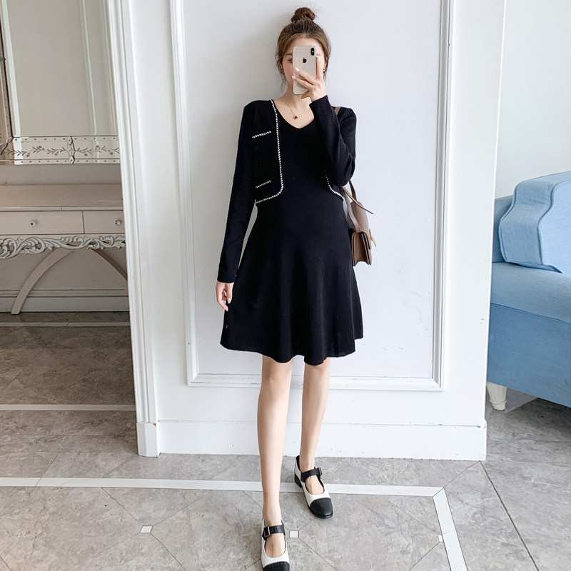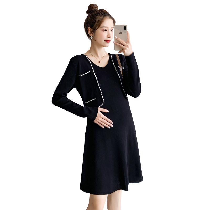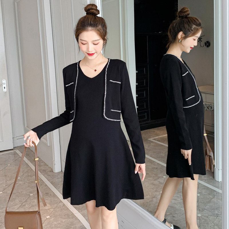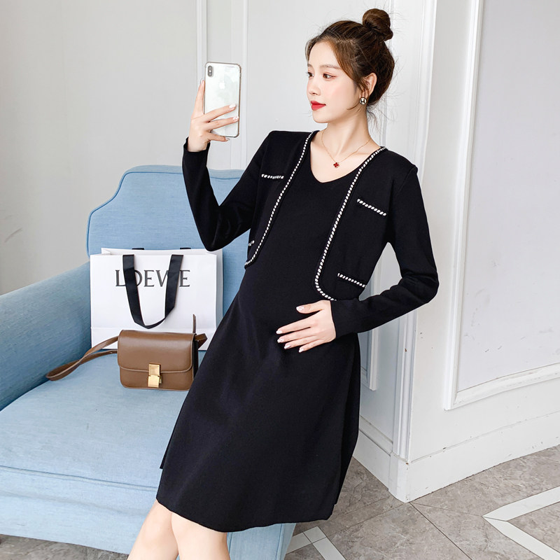 Casual temperament tide 2022 spring new net red maternity wear Korean version of the thin fake two pieces of nursing knitted dress
