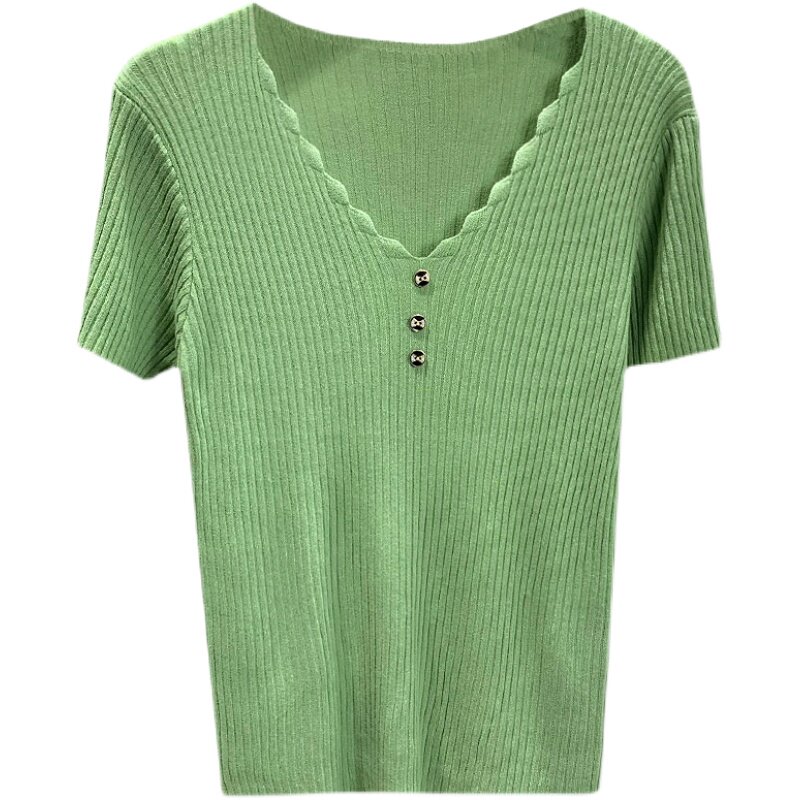 Short sleeve blouse in 2022 new spring and summer wear V - collar wearing thin wearing T - shirt