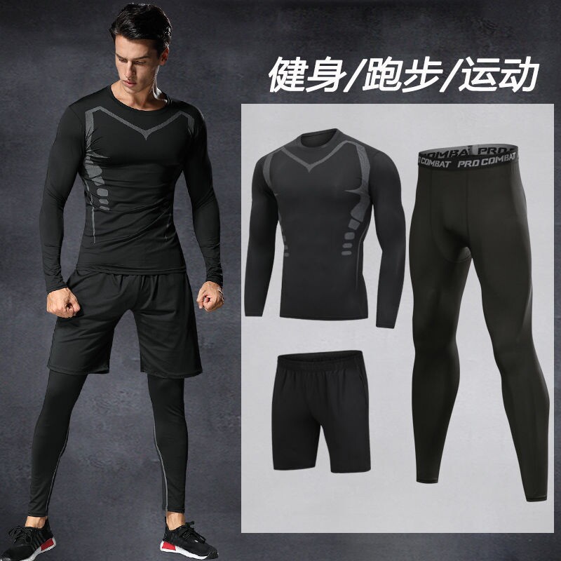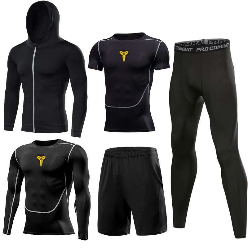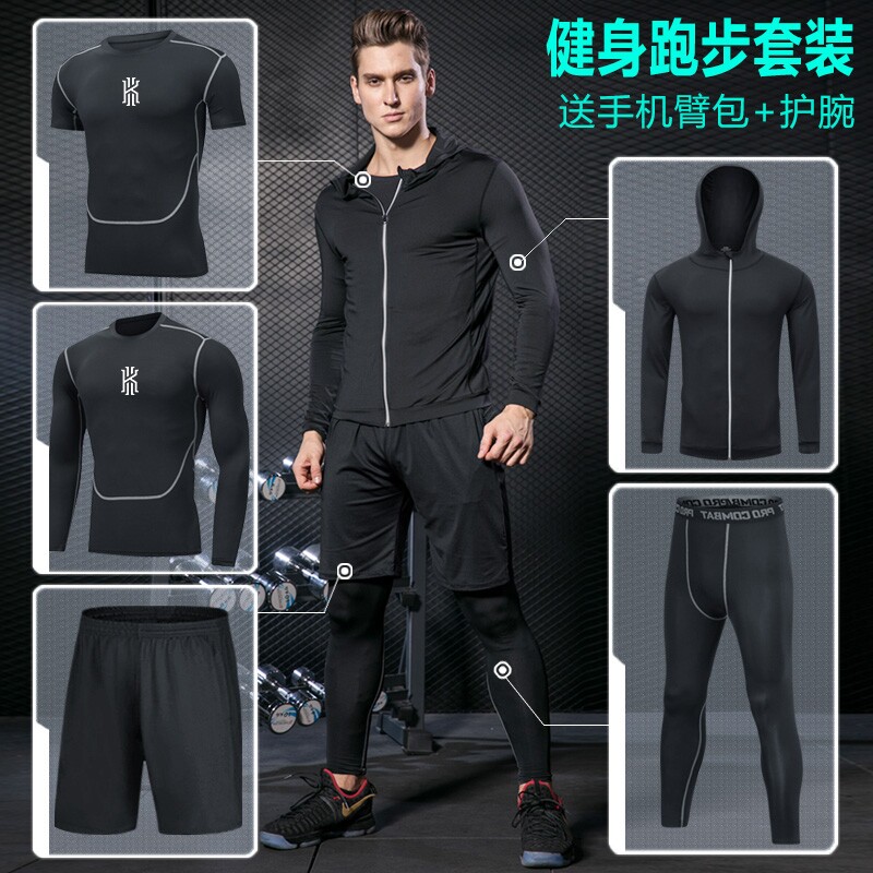 Track and field high-elastic fitness clothes men's set of sports running basketball quick-drying suit five pieces of sports training clothes autumn