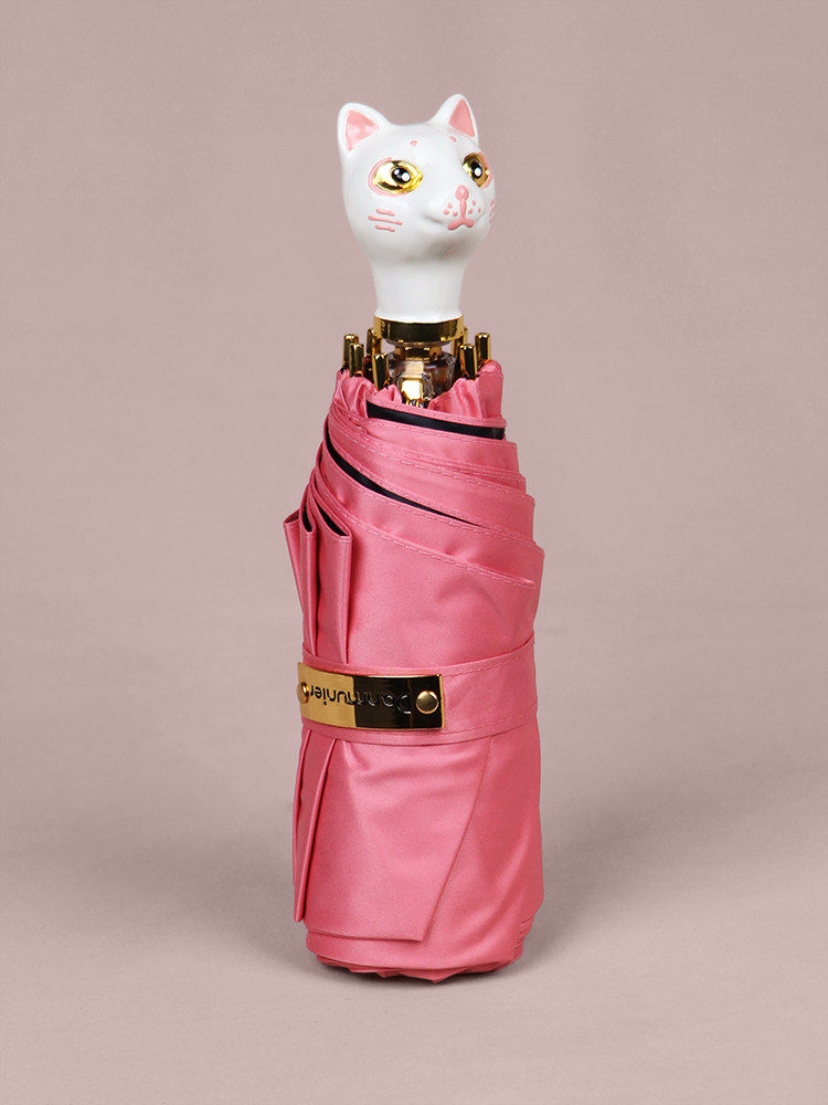 DanMunier cat cat umbrella umbrella female cute student high face value strong and durable rain or shine dual-use small umbrella