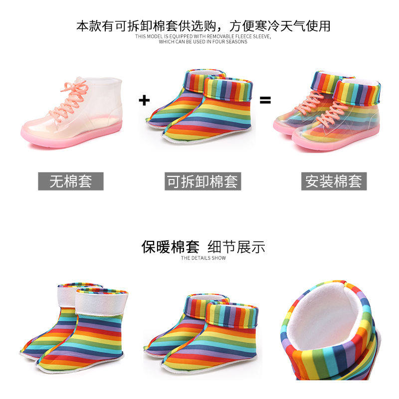 Plus Trial Cotton Jelly Transparent Non-slip Fashion Waterproof Shoes Rain Shoes Rain Boots Rubber Shoes Women Short Drum Adults Korean Version Warm Winter