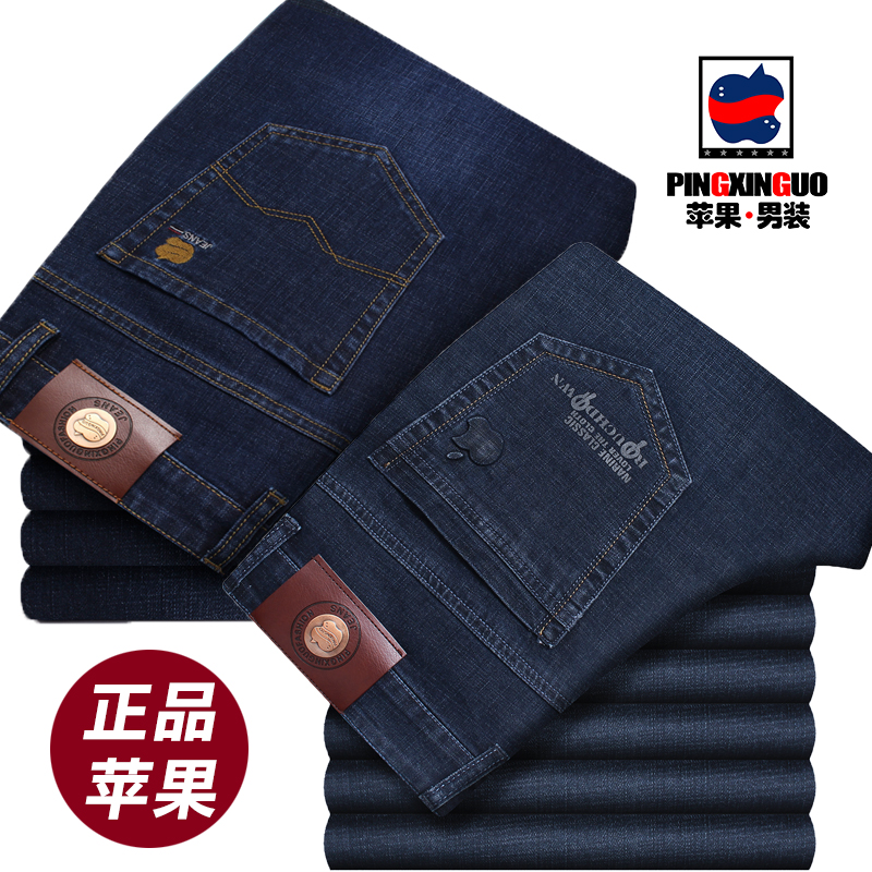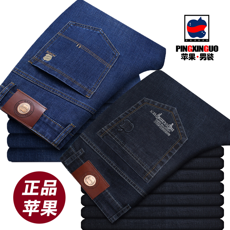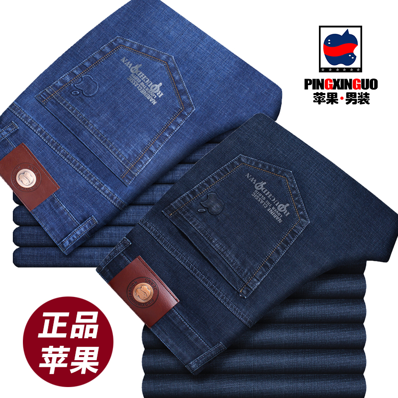 Apple jeans men's spring and autumn straight loose men's long pants middle-aged high waist elastic summer thin section
