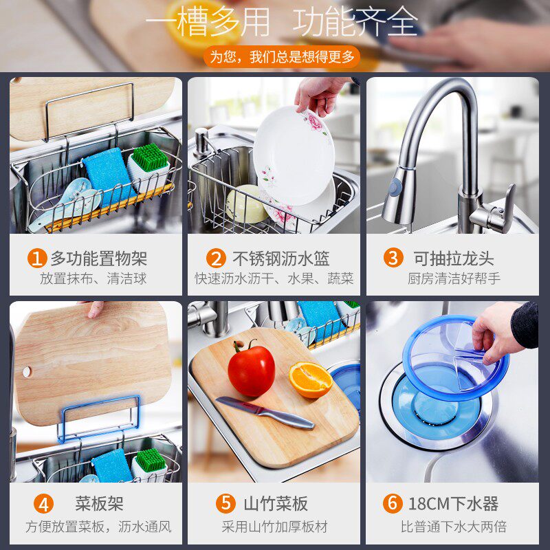 Kitchen Multifunction Washing basin Single sink 304 stainless steel Home sink Single sink Dishwashing Pool Floor basin Large number