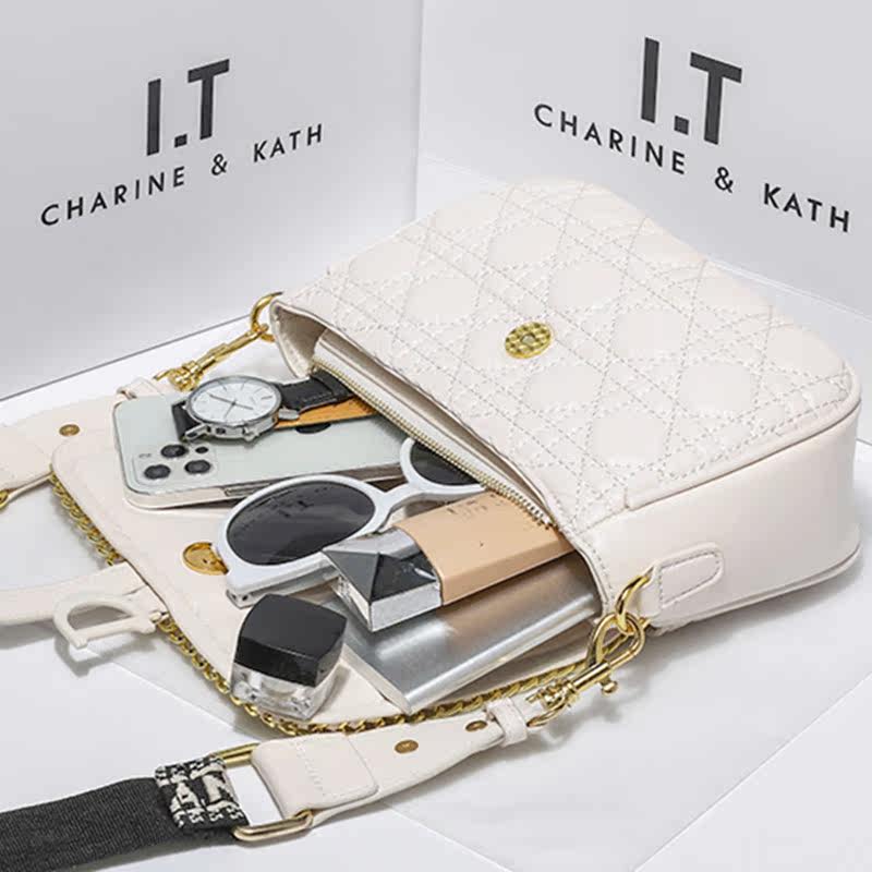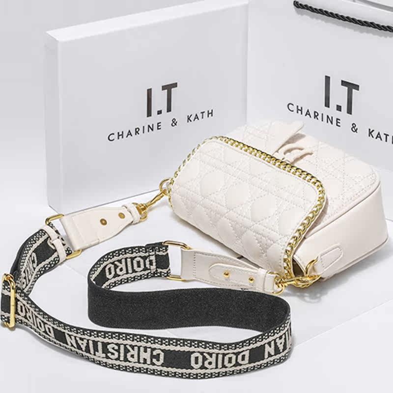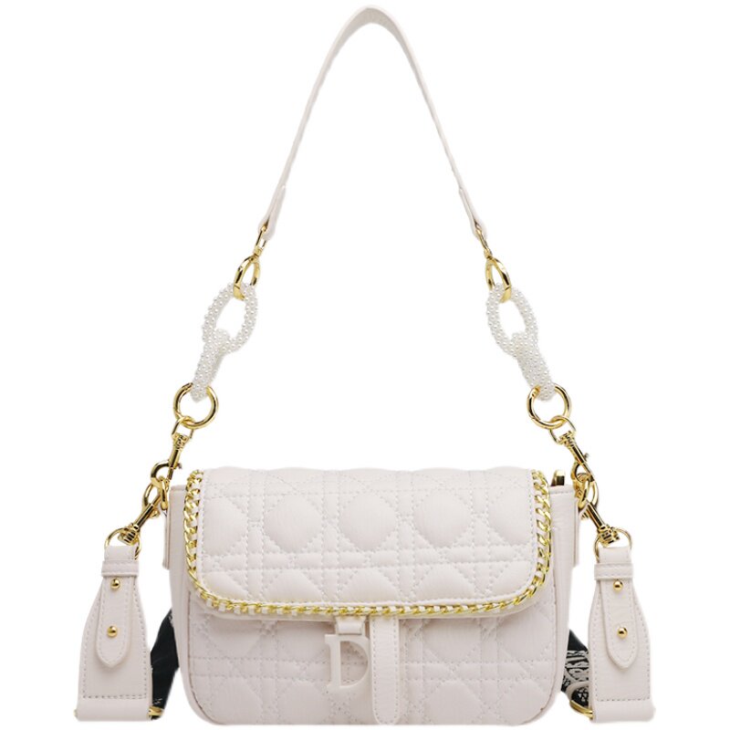 Hong Kong Light Luxury Genuine Leather 2022 New Trendy Fashion Ladies Korean Style Embroidered Lingge Single Shoulder Messenger Chain Bag Chest Bag - Taobao