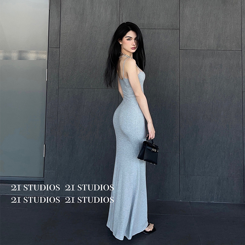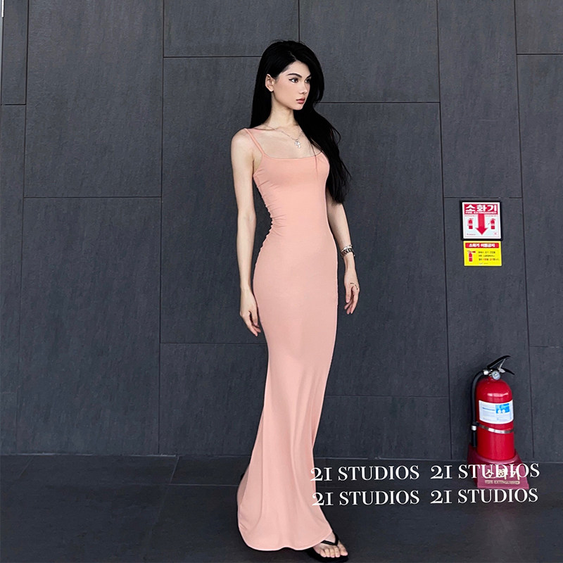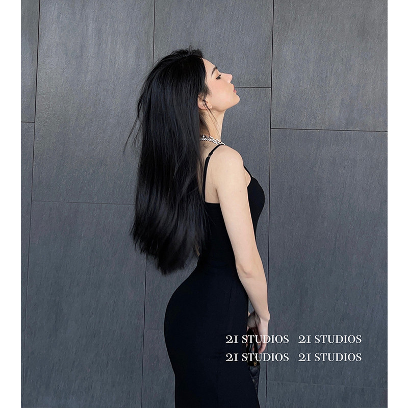 Spring summer flat for Skims pure sexy hot girl slim slim slim buttocks black suspender dress women's long skirt