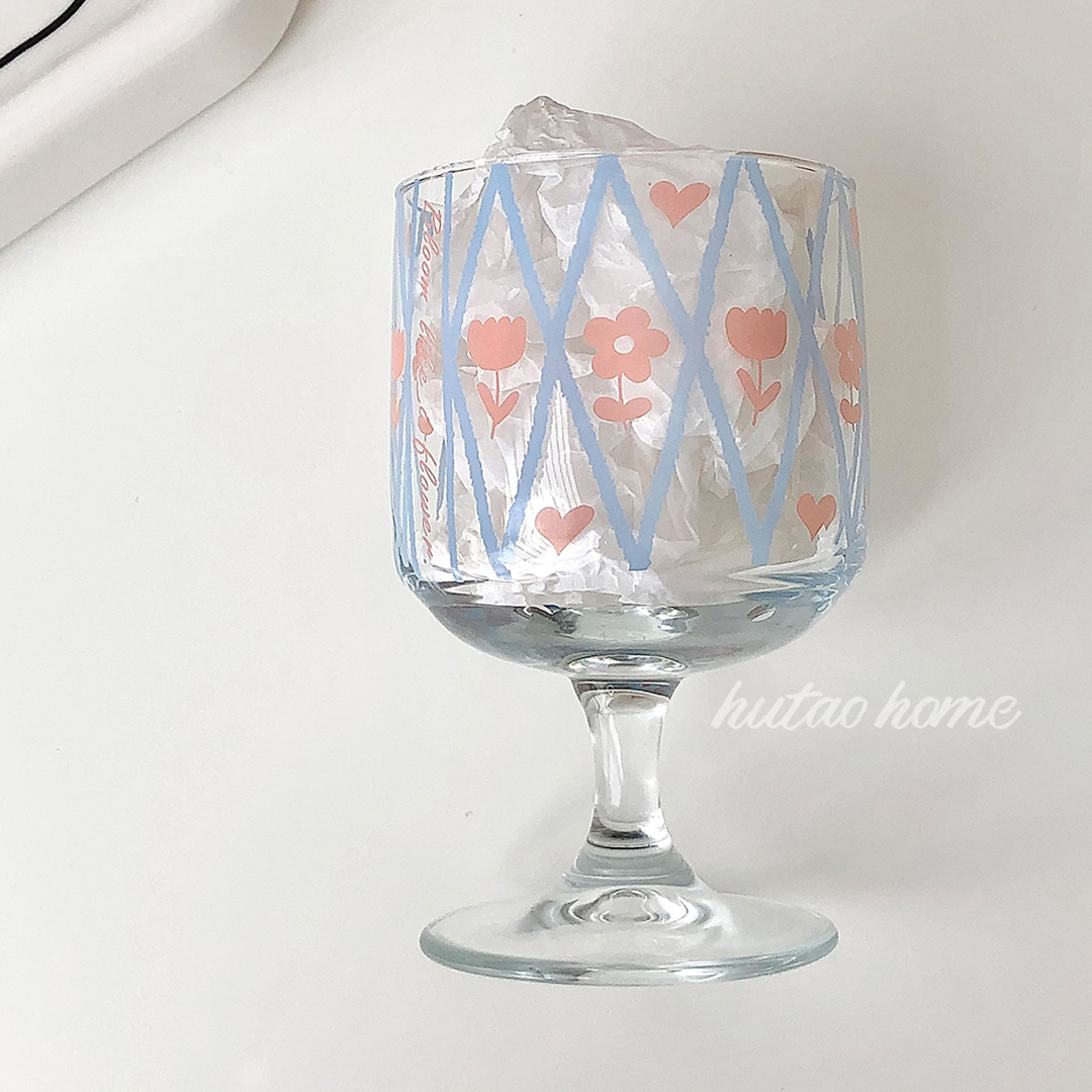Original homemade ins wind girl heart tall glass flower color printing juice cup milk cup cold drink cup