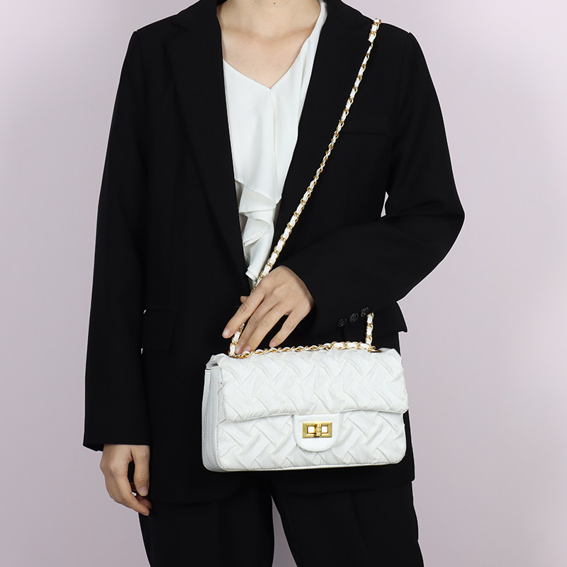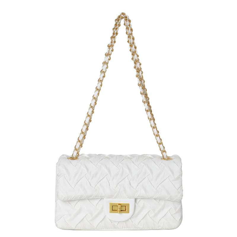 European And European Fashion Chain Rhombus Pleats Zou Bag Girls Casual Niche Fluorescent Square Lock Catch Single Shoulder Armpit Small Square Bag