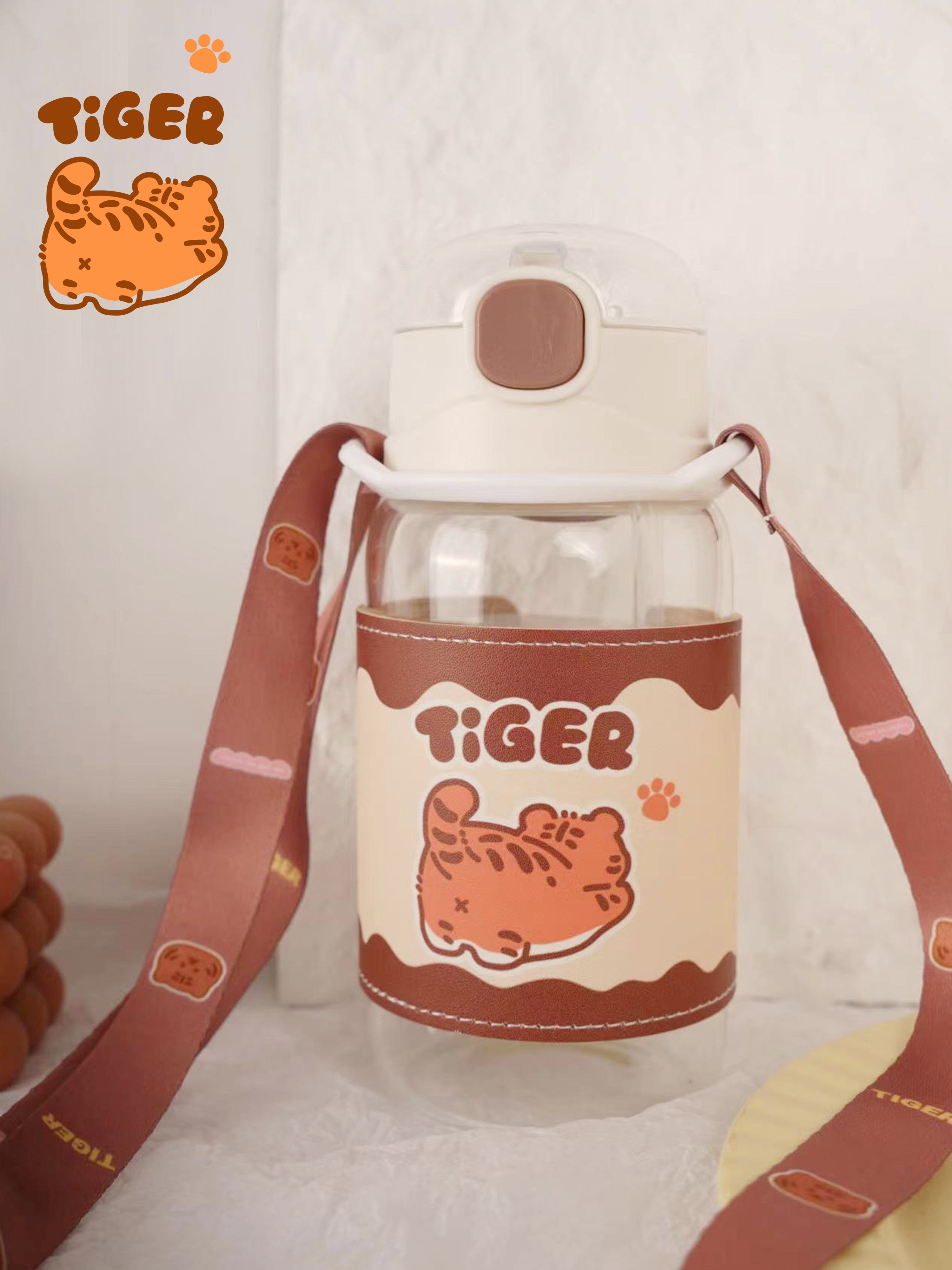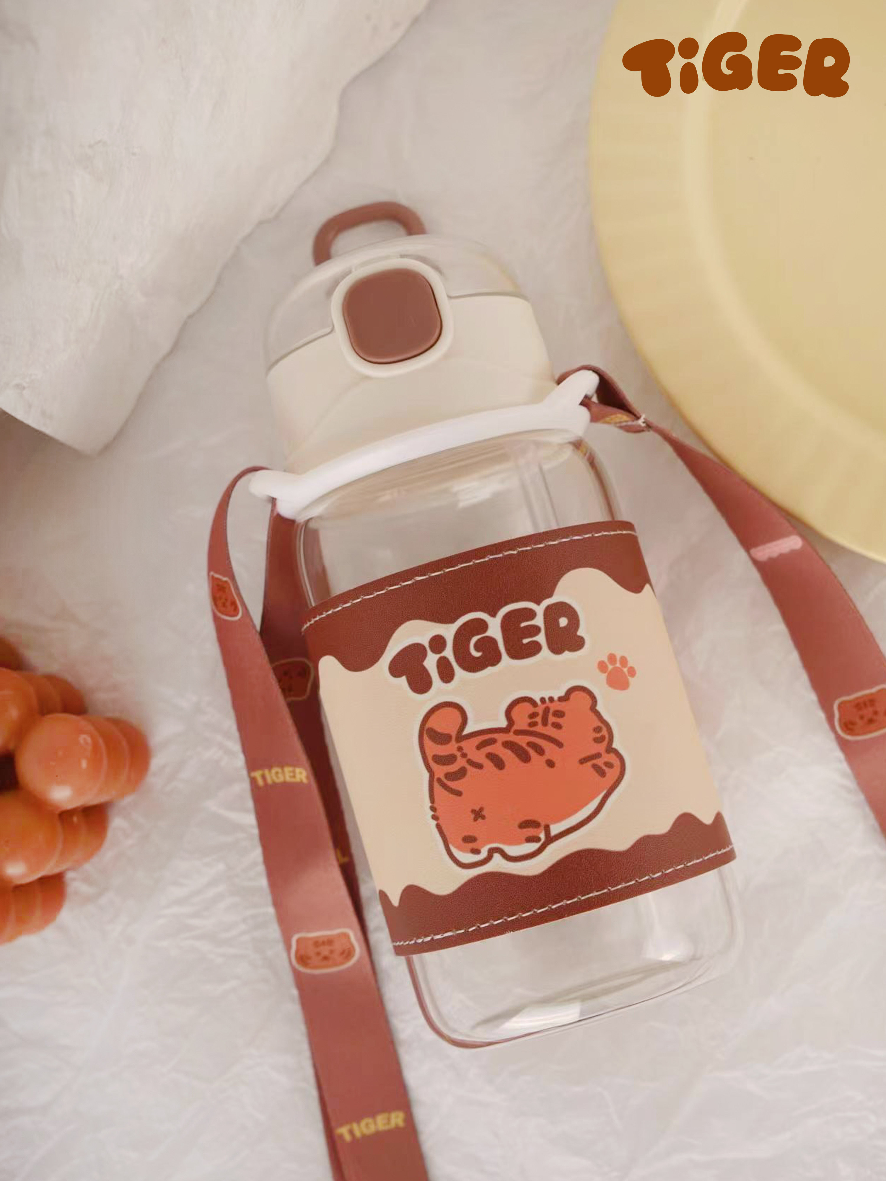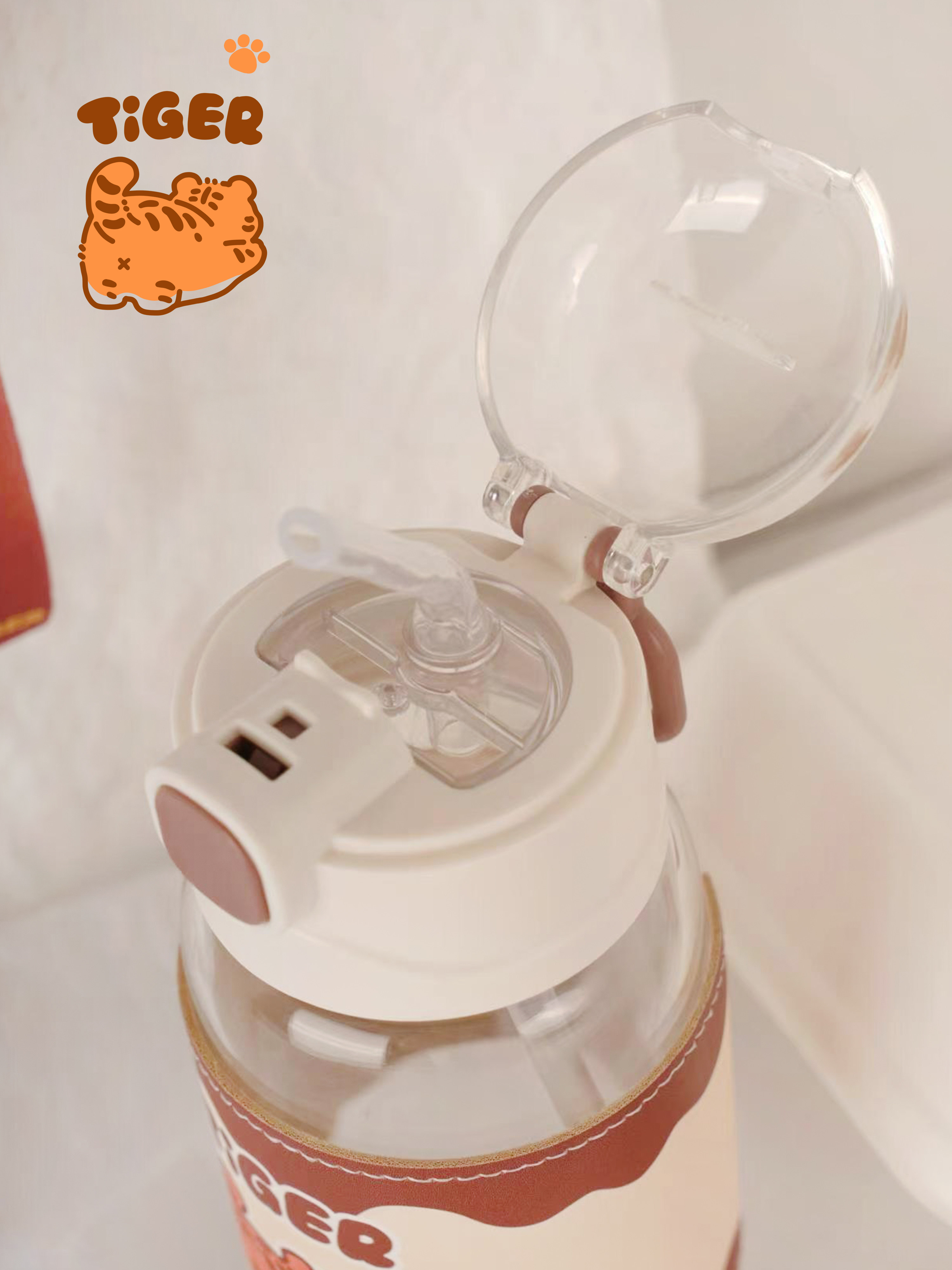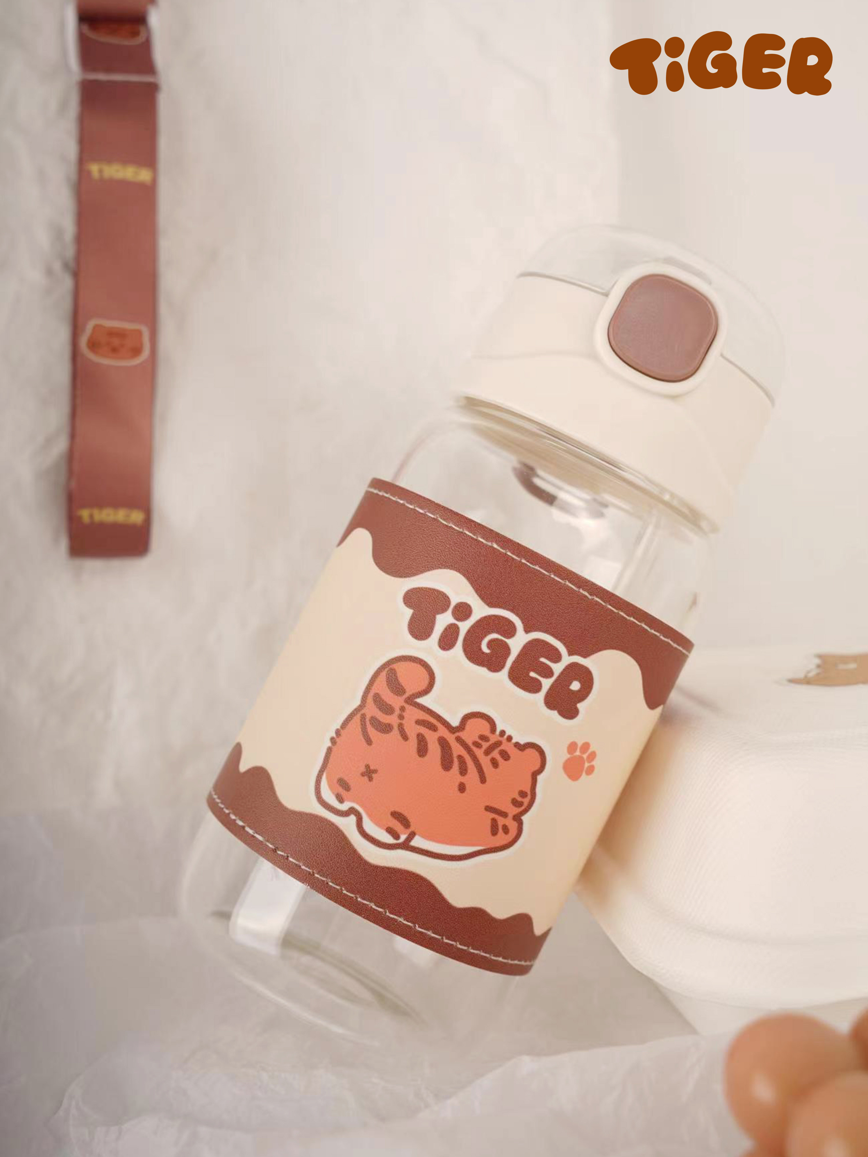 Original Wild Anecdote original cute Tiger Glass Cup cup Sucker Cup cup with cup thermal insulation portable ins