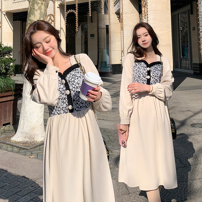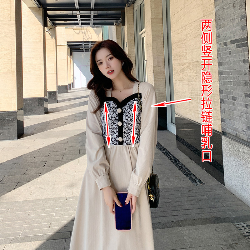 Pregnant Woman Breastfeeding Ocean Dress 2022 Spring Dress New Collage Elegance Small Scent Wind Ladies Long Sleeve Out of Breastfeeding Suit