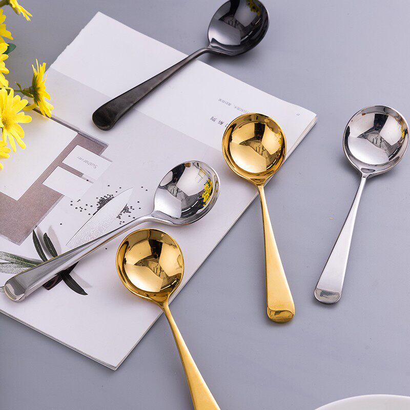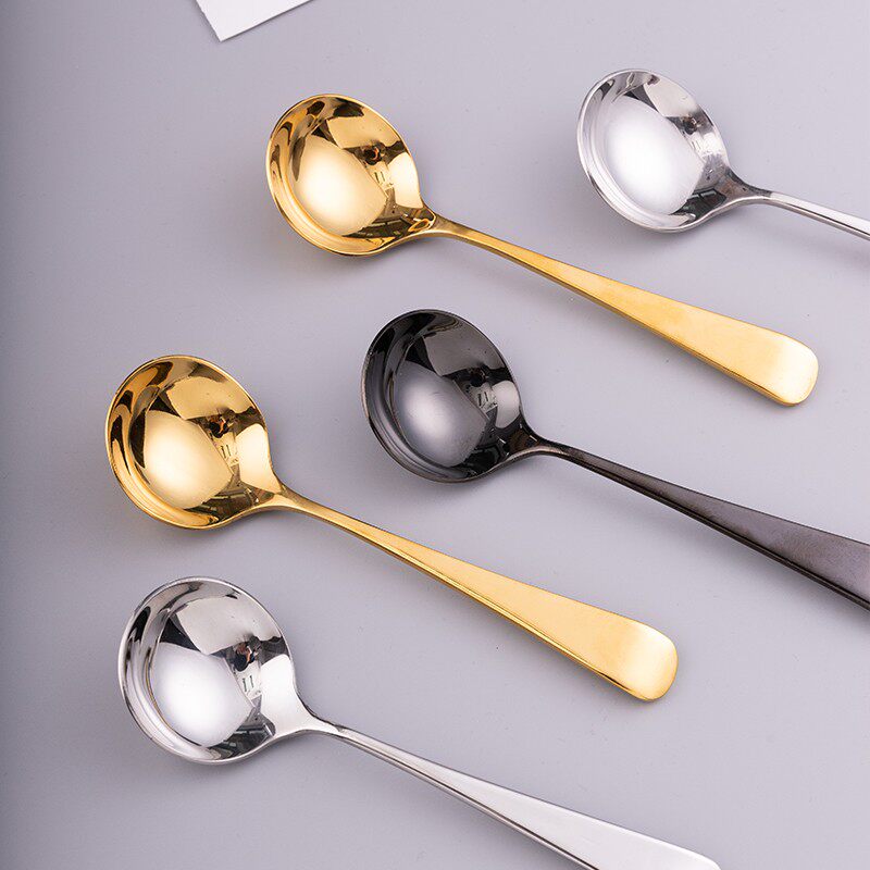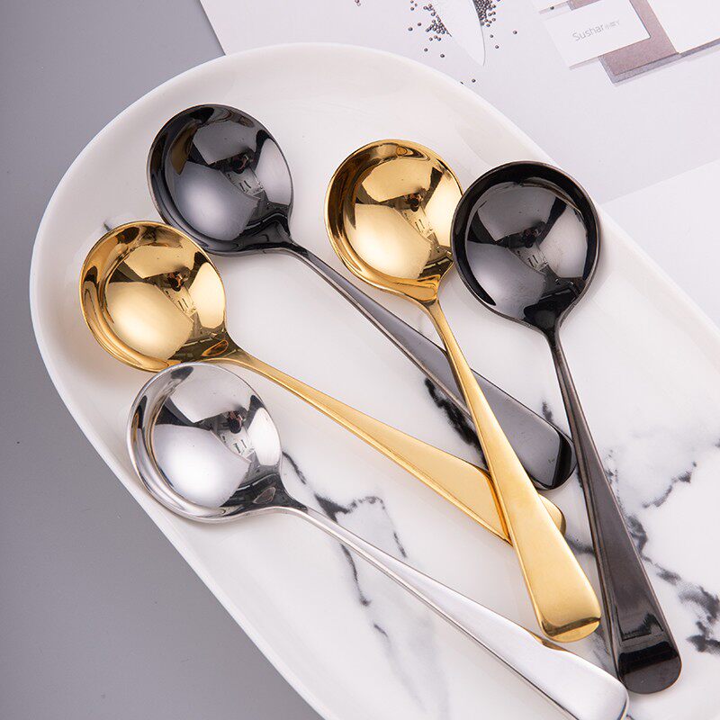 Korean round spoon-golden Korean round spoon-rose gold and Korean style round spoon-black gold Korean style round spoon-red gold handle Korean style round spoon-white gold handle Korean round spoon-green gold handle Korean style round spoon-pink gold