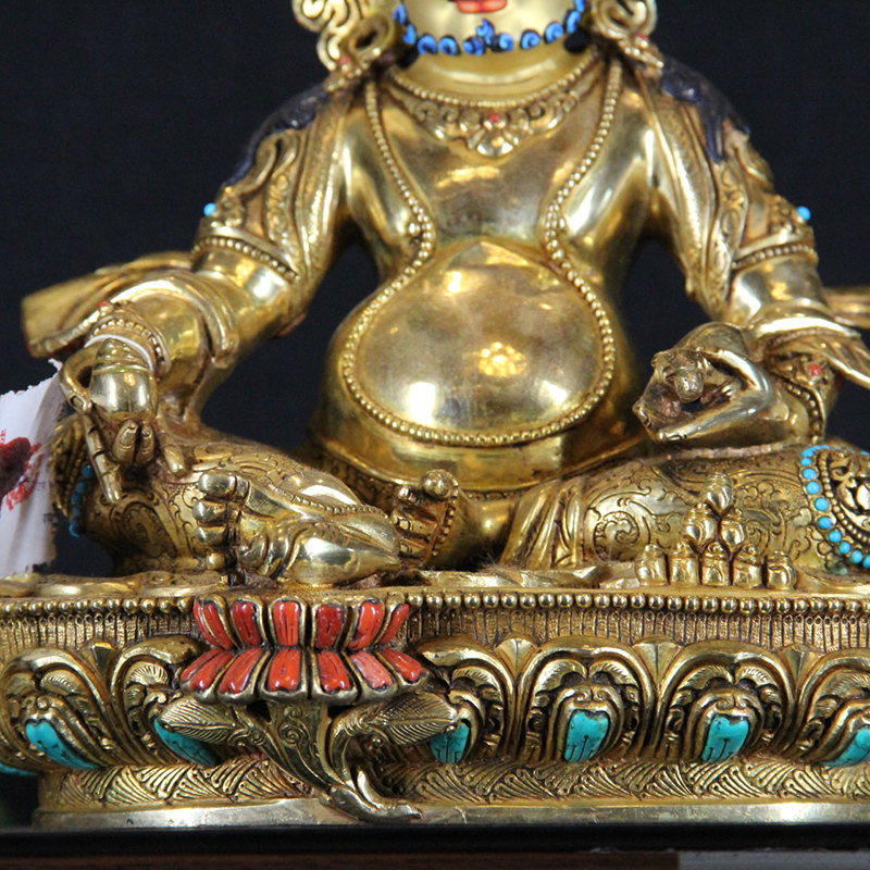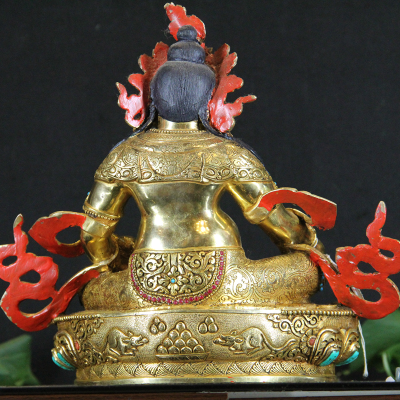 Yellow God of Wealth Buddha statue Nepal pure hand-made imported copper gilt carving inlaid gemstone tantra worship ornaments 7 inches