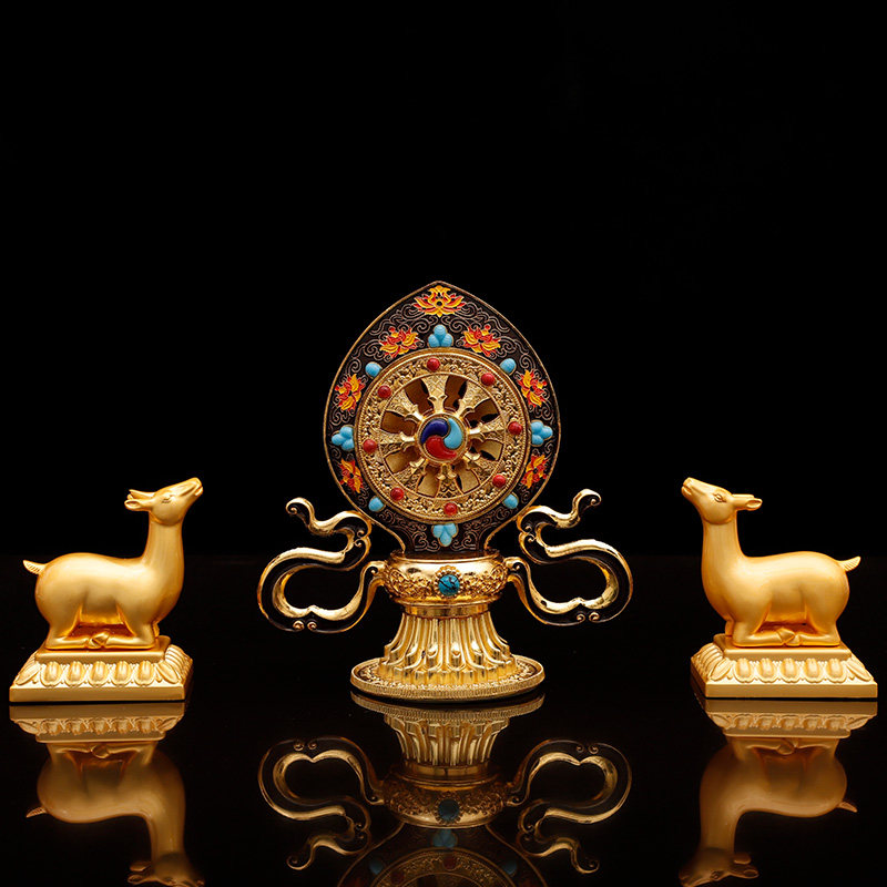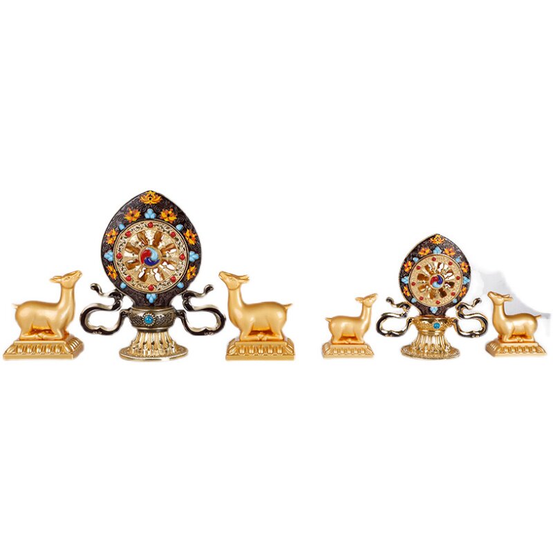Mizong Tibetan Buddhist Buddha Furniture handpainted gilded gilded double deer farwheel Baofo Home Pendulum Pieces the size number-Taobao