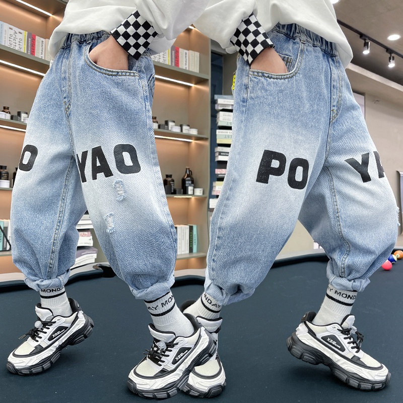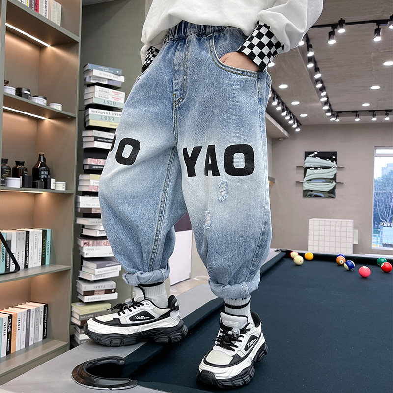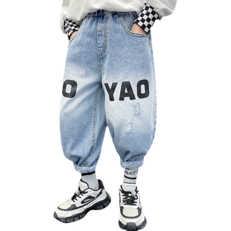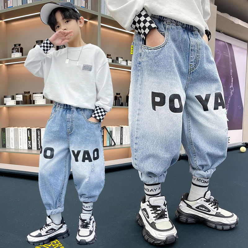 Boys' jeans spring and autumn new children's middle-aged children's jeans fried street fashionable handsome loose tide boy trousers