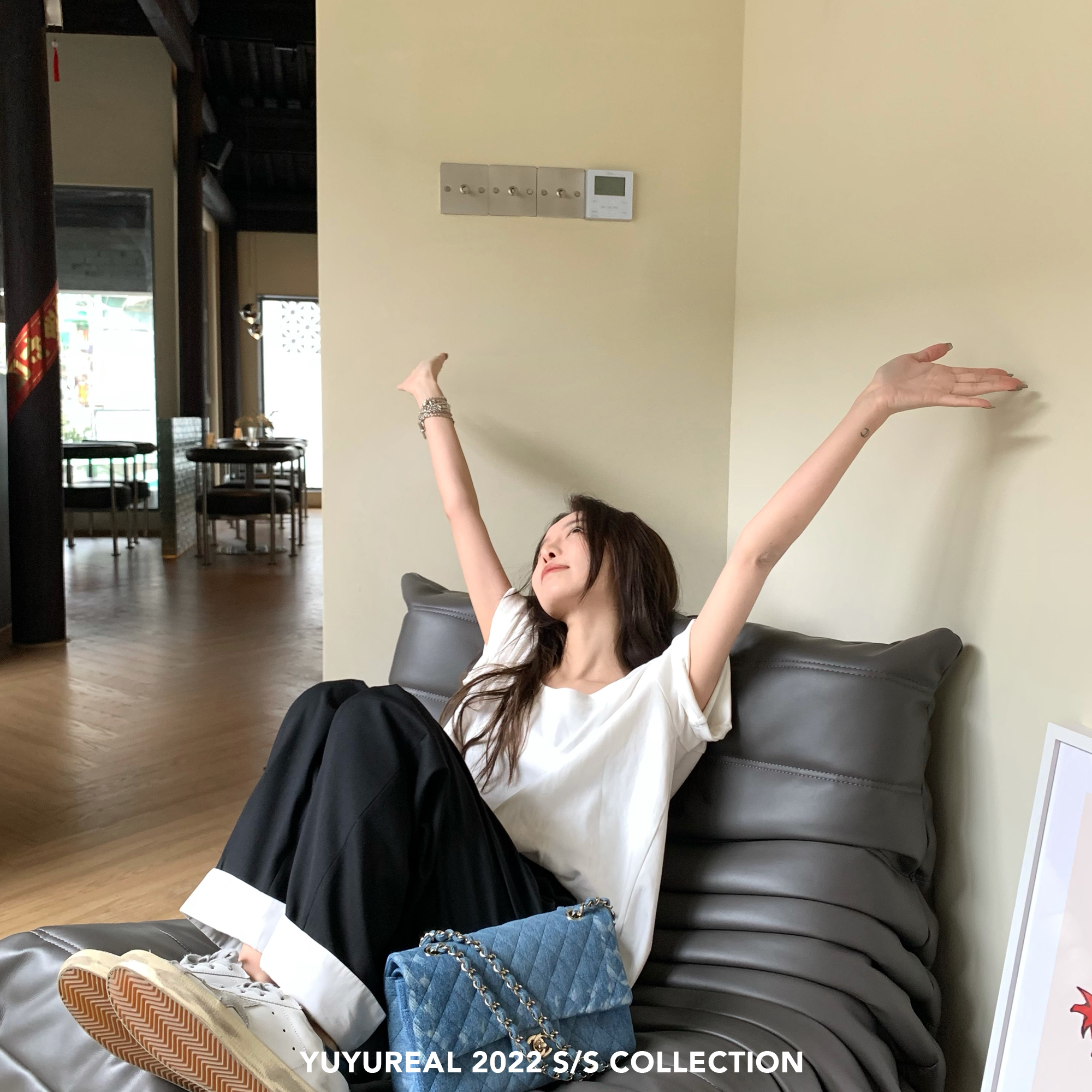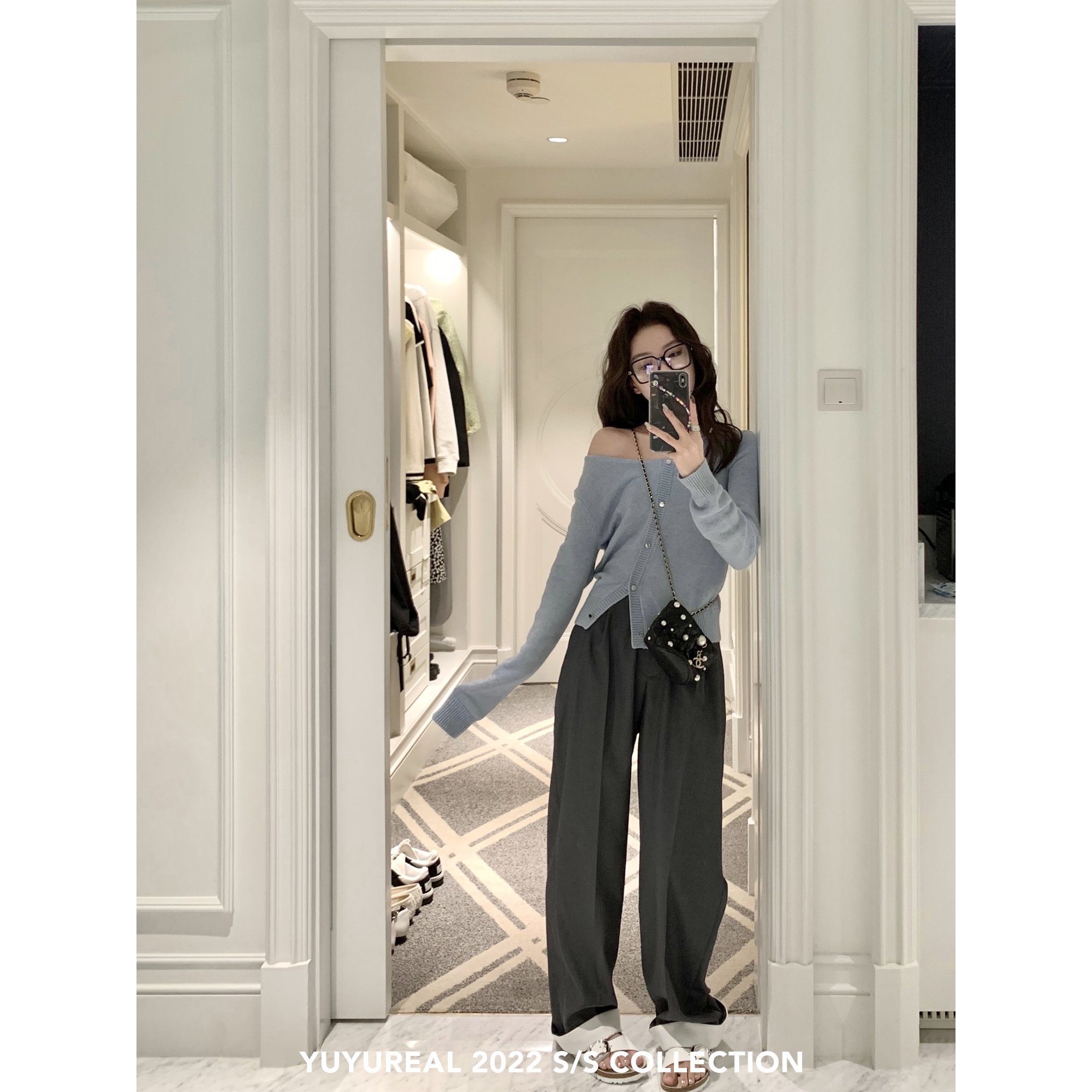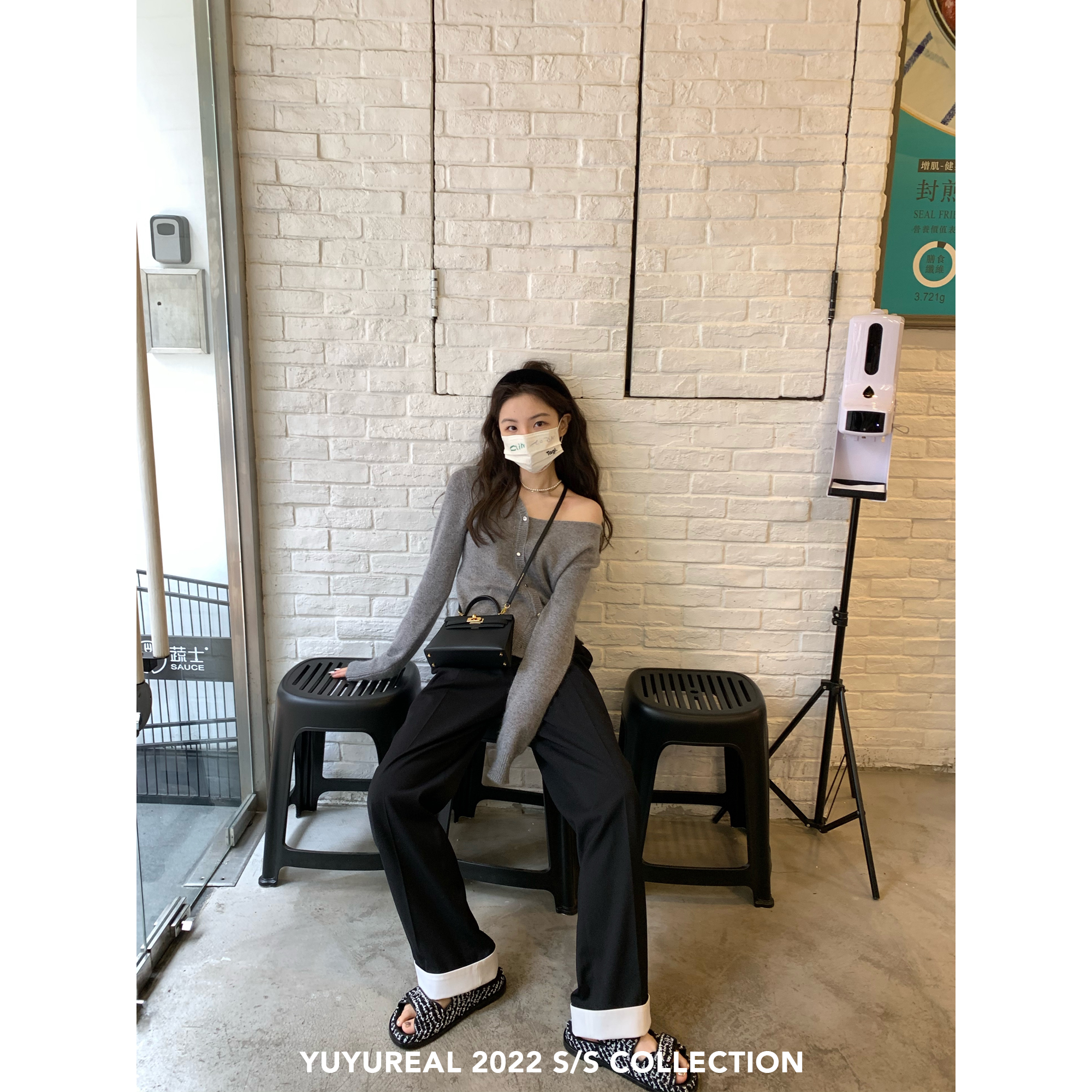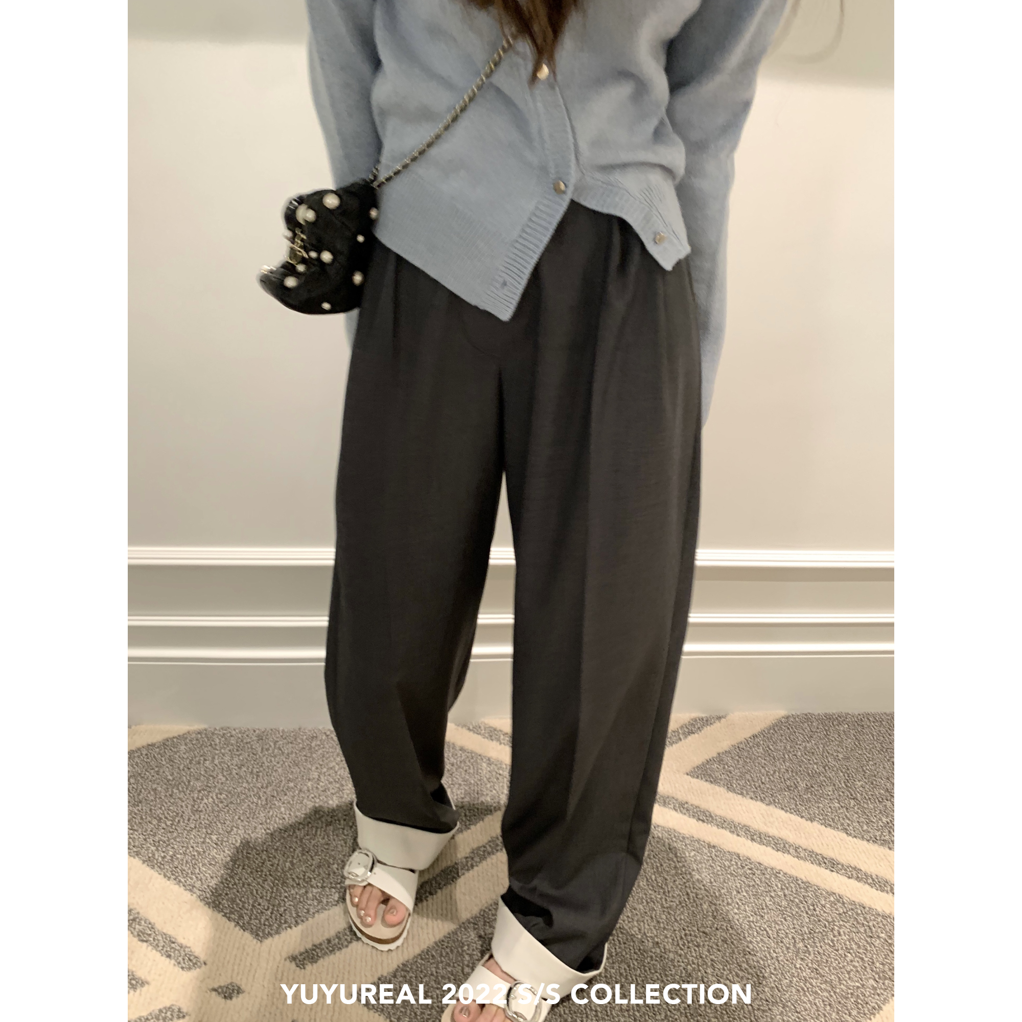 YUYUREAL-Can be worn in four seasons ~ fashionable curling high waist mopping straight pants women's loose and thin wide-leg casual pants