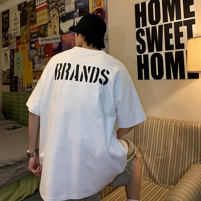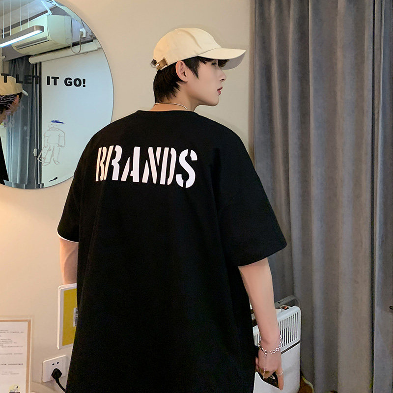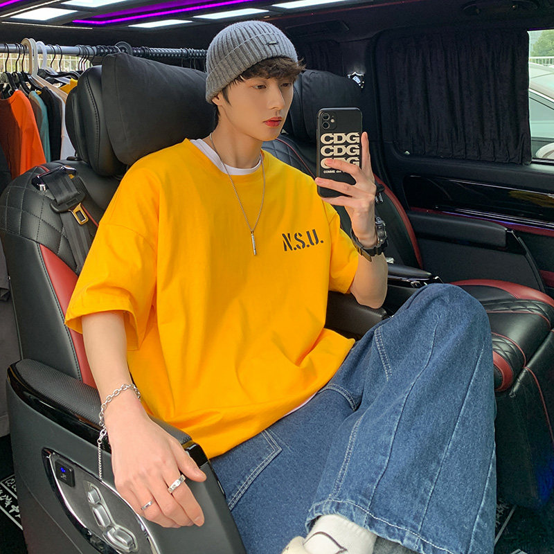Round collar short sleeve T-shirt male summer new 100 lap loose large size and half cut sleeve T-shirt harbor wind Korean version trendy blouse