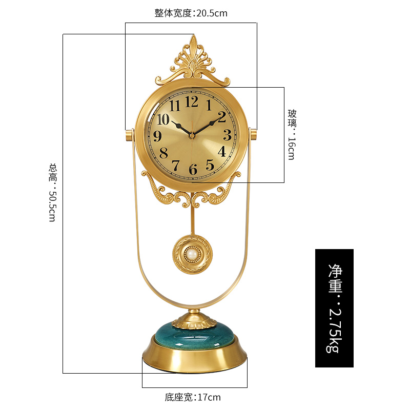 European Brass Bell Household Desktop Clock Light Clock Light and Creative Quarter Clock