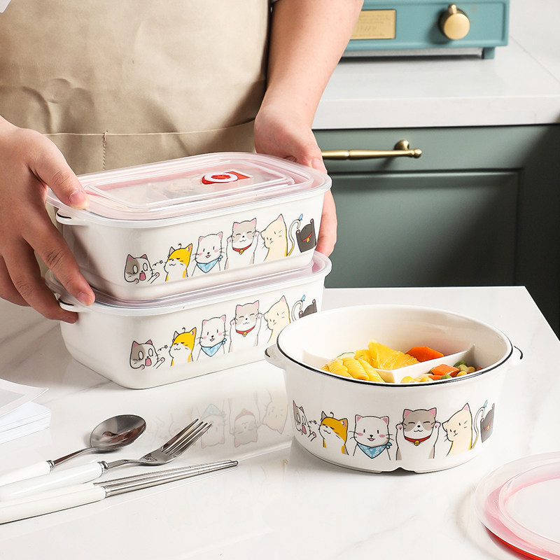 High face value lunch box ins microwave heating light ceramic with lid girl special partition with soup bowl lunch box