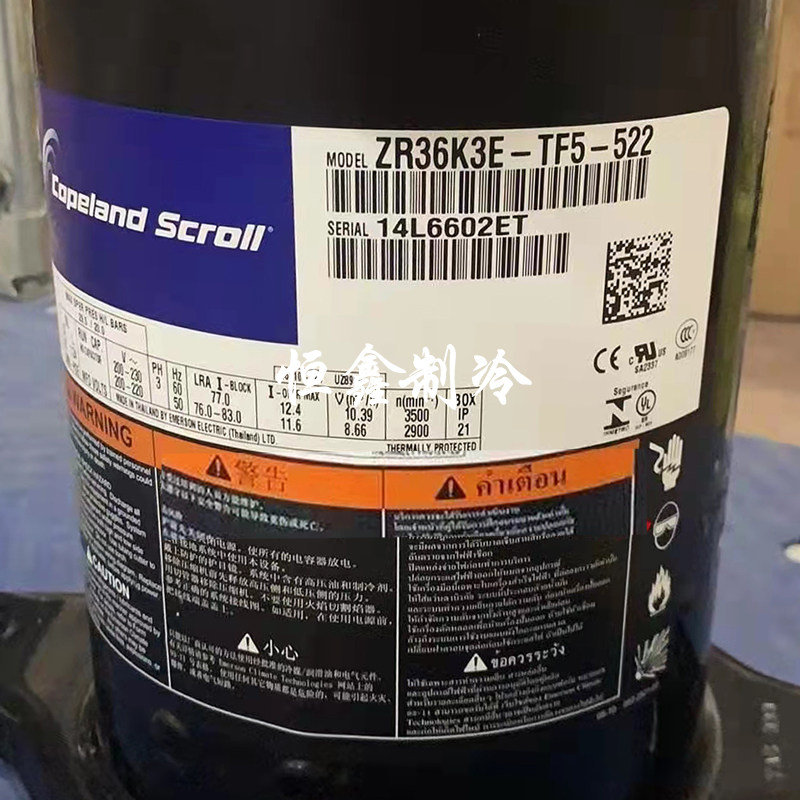 ZR36K3E-TF5-522 ZR40K3E-TF5-522 ZR36K3 Copeland 3 Hp 3 Phase 220V Compressor