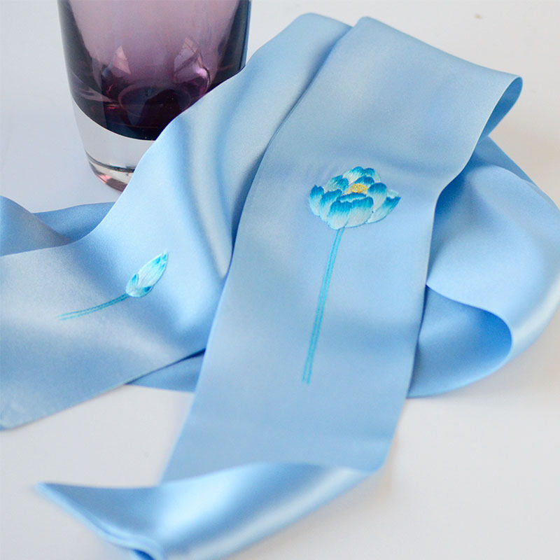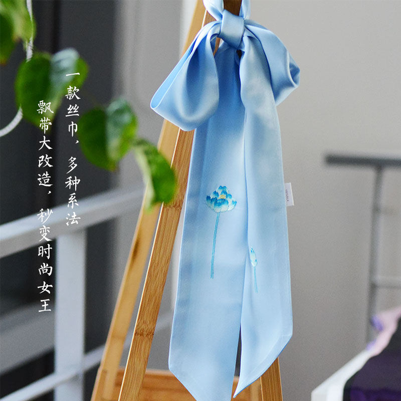 Famous ancient embroidery art festival teacher gift silk slender narrow silk scarf mulberry silk small ribbon streamer ribbon