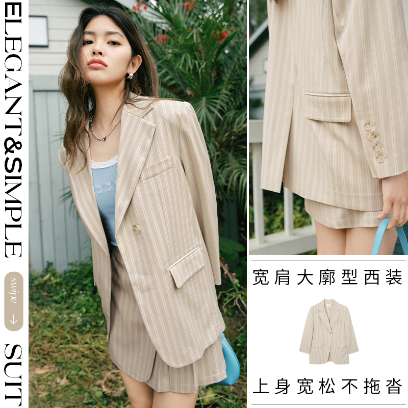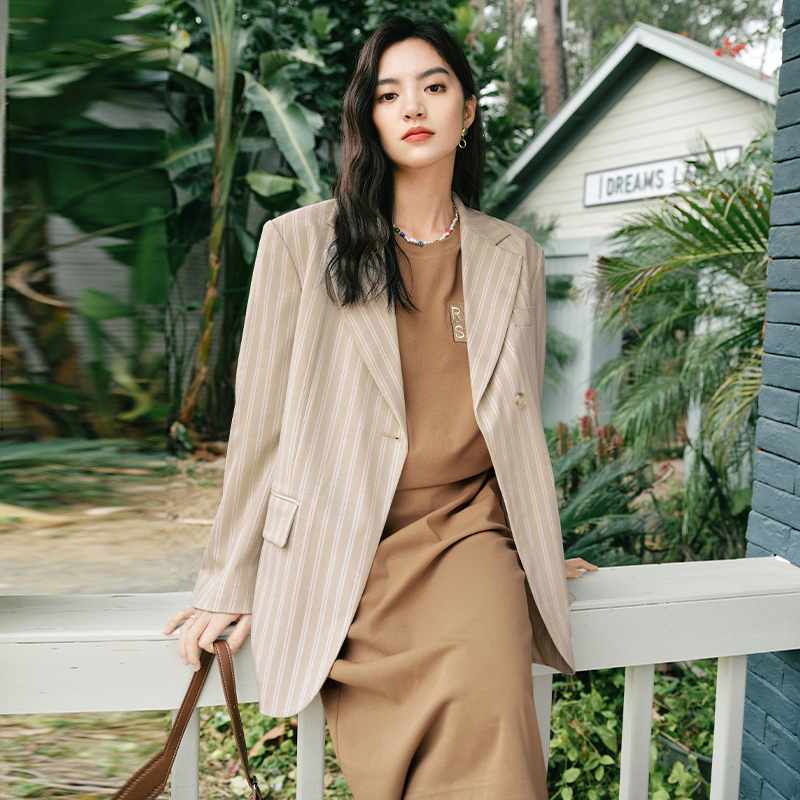 Iveli suit jacket female profile jacket summer dress 2022 new Ironing Striped Suit Lady Suit