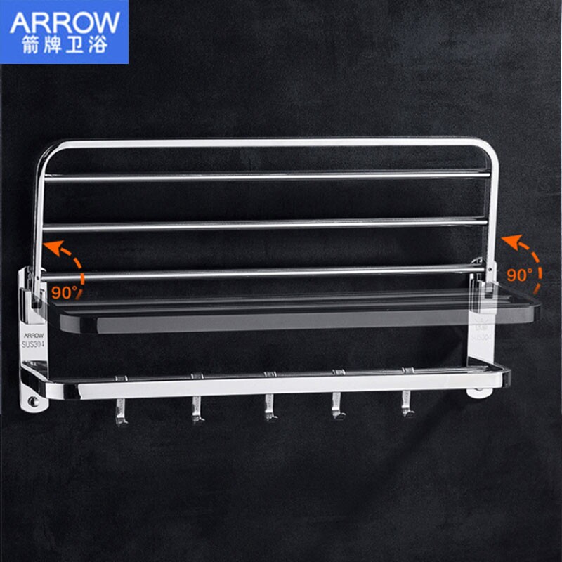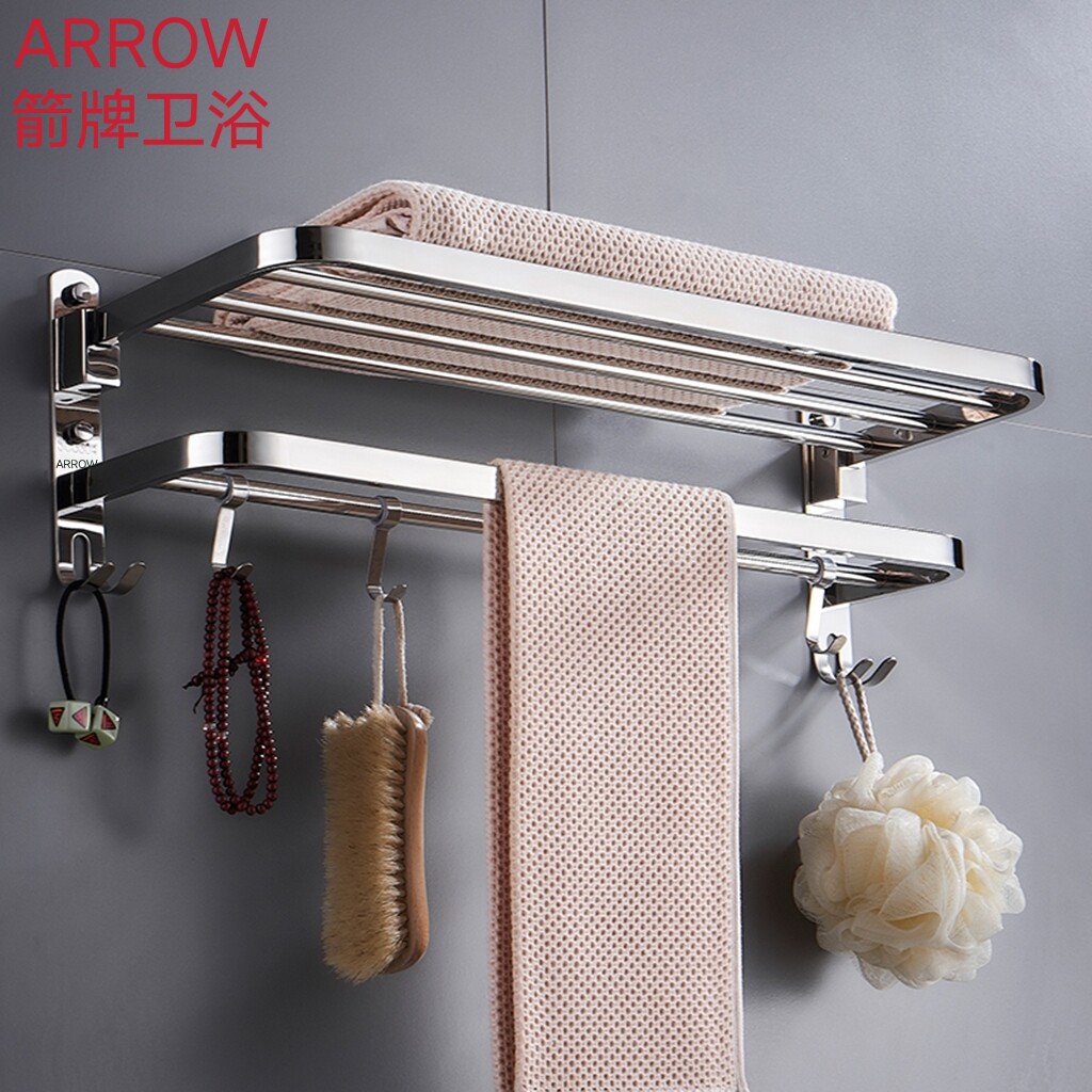Arrow wool towel rack free of punch 304 bath towels Stainless Steel Folding Bathroom Makeup Room Shelf Wall Hook