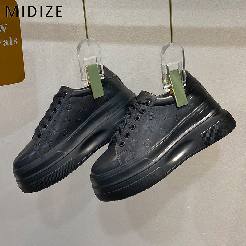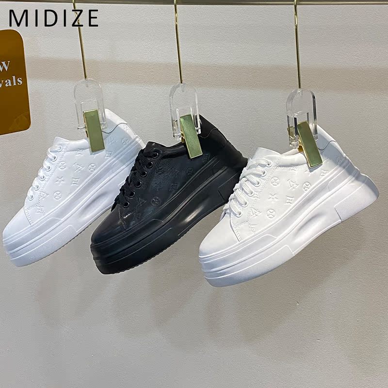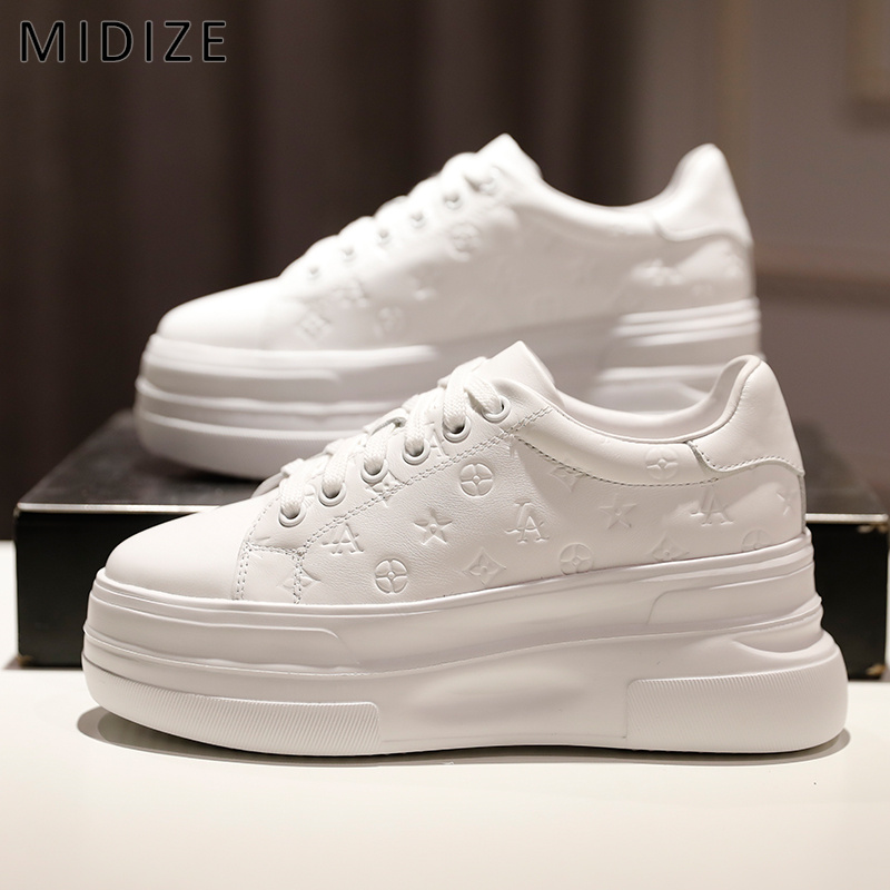 MIDIZE Small white shoes for children of leather shoes in 2023 new spring thick soles increase leisure sports pine shoes