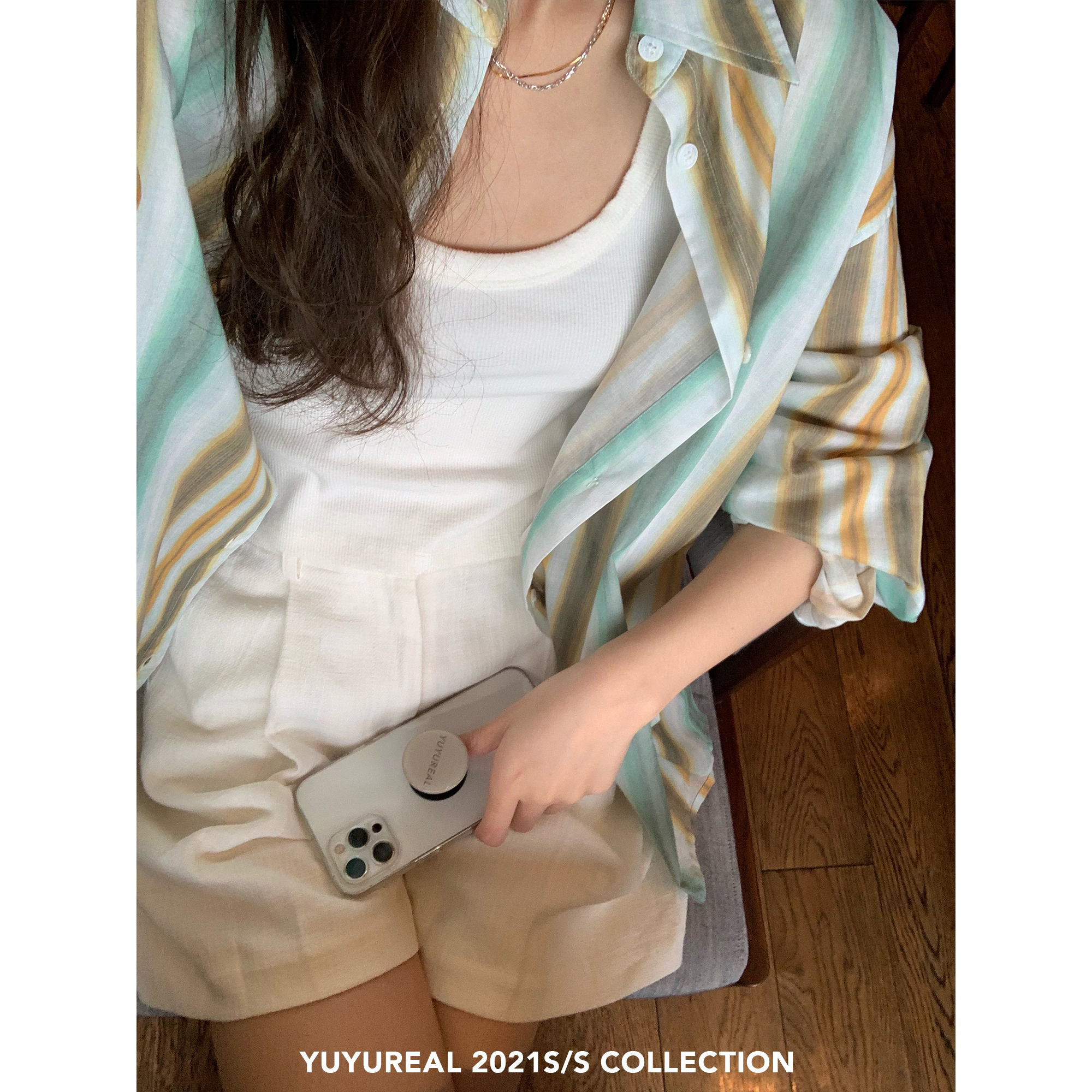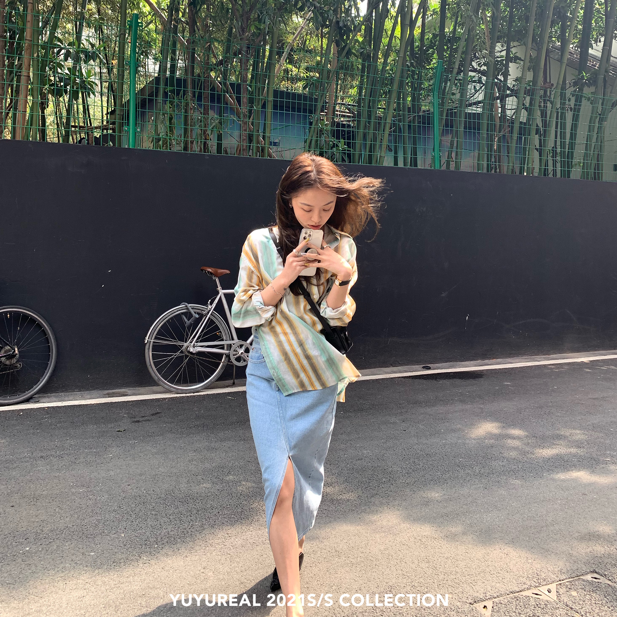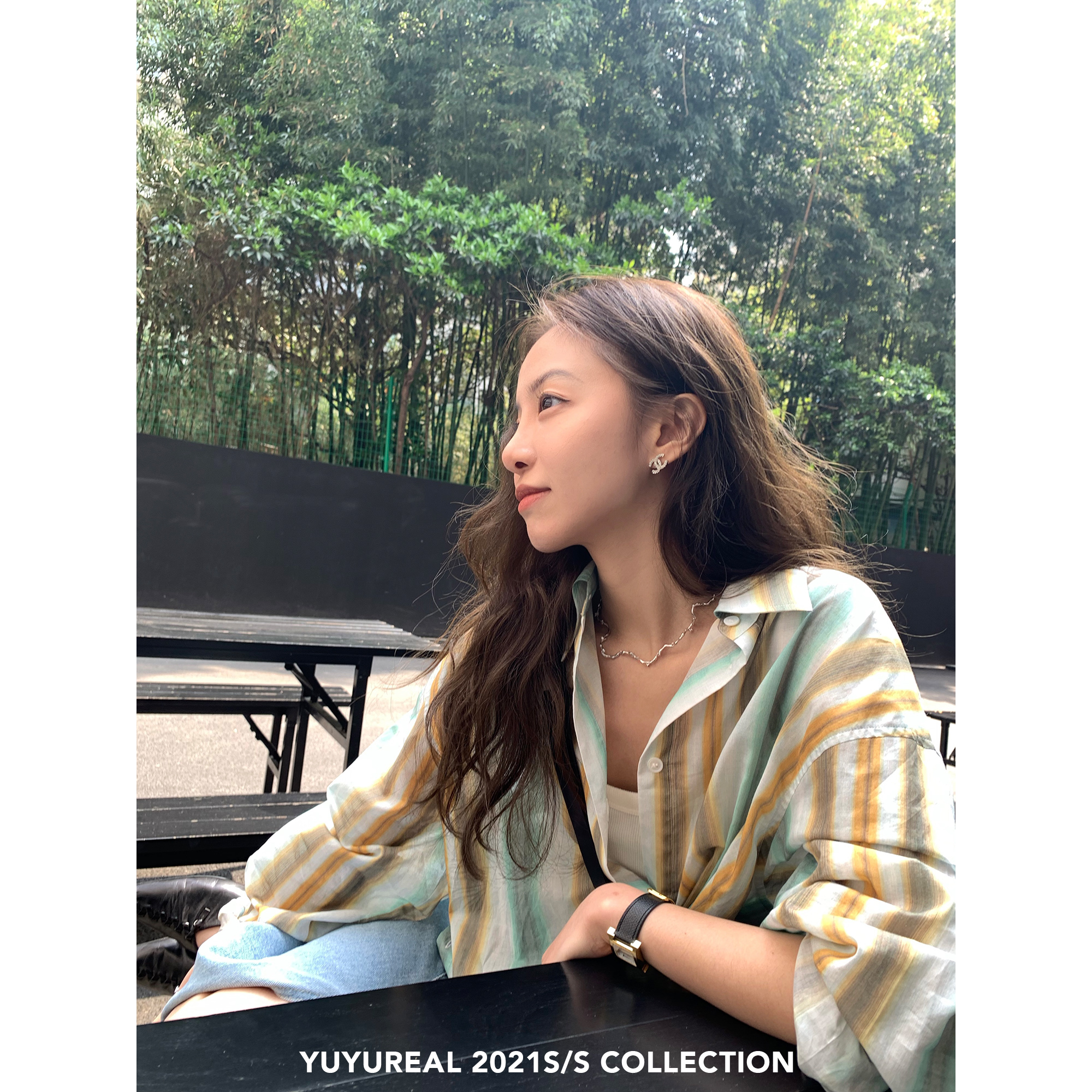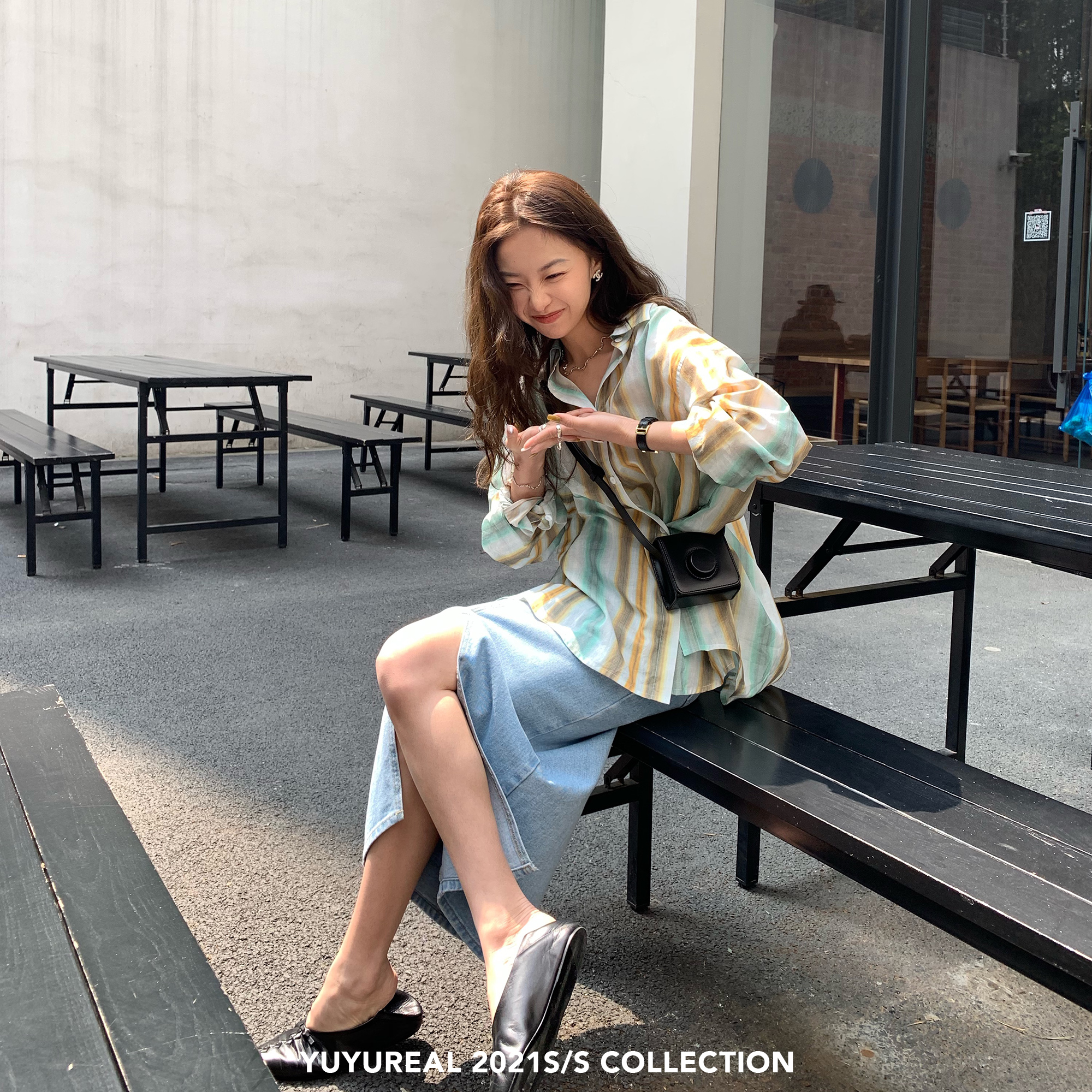 YUYUREAL-Loose long-sleeved striped shirt women's thin casual temperament top