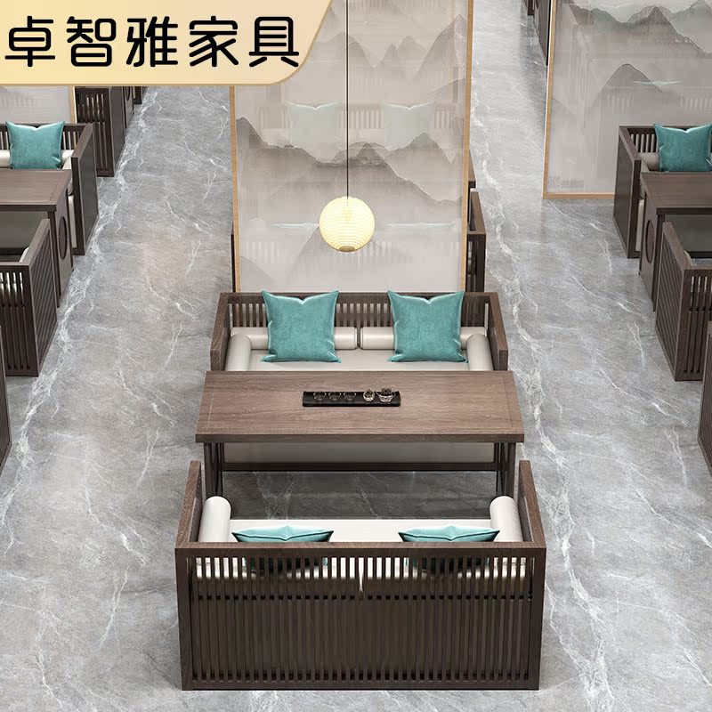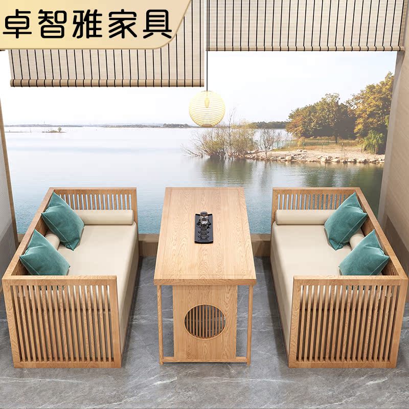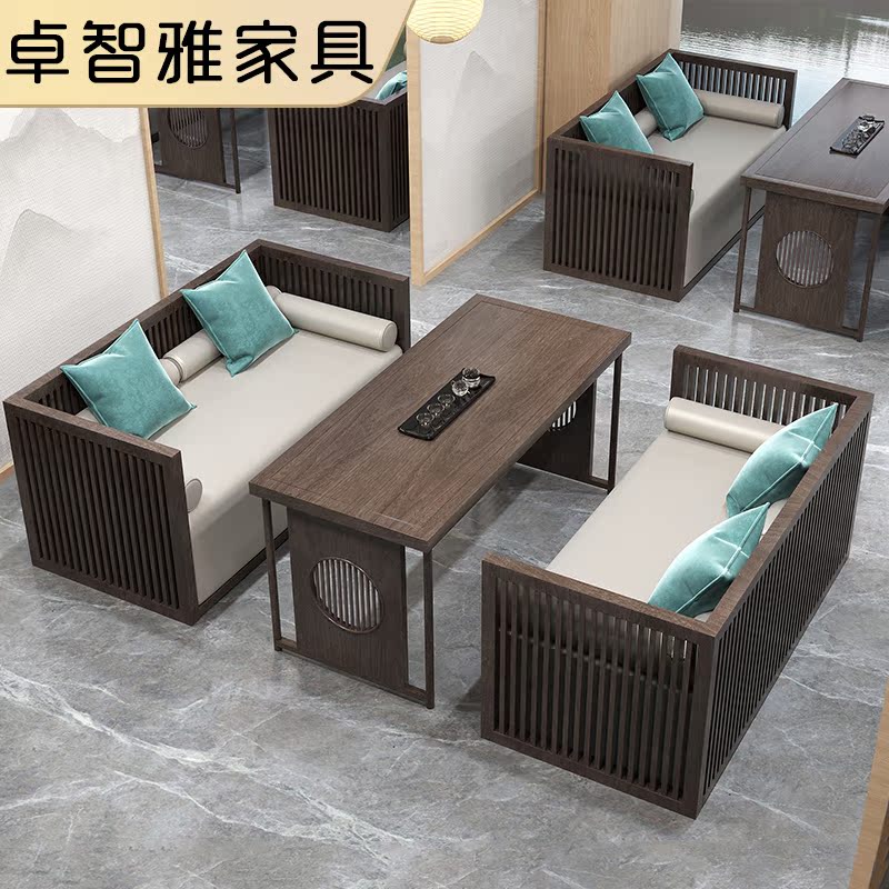 New Chinese Solid Wood to discuss sofa combination Zen Homestay Restaurant Tea Building Restaurant Card Table Sofa