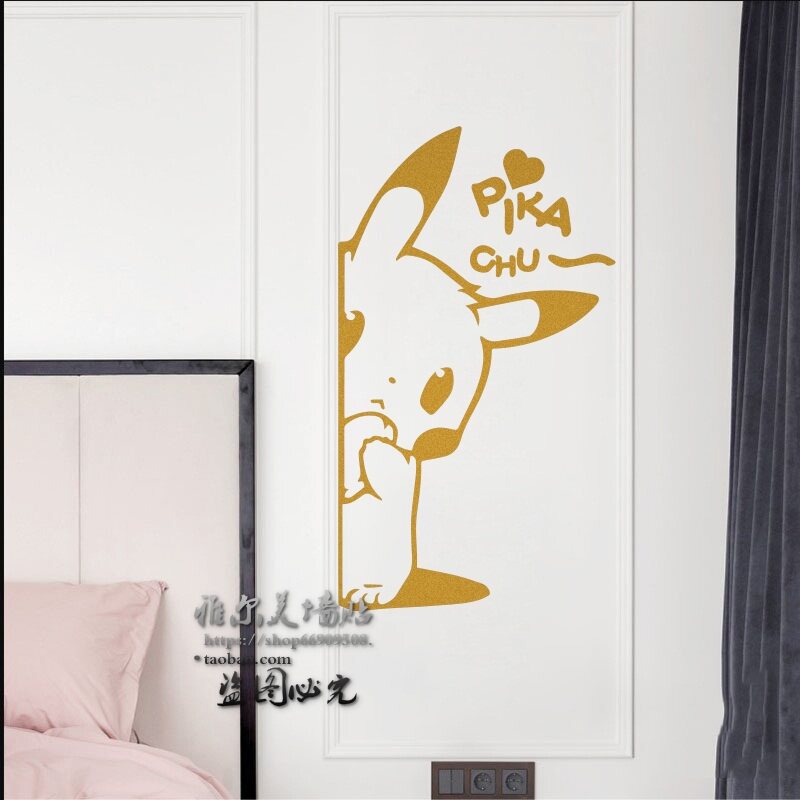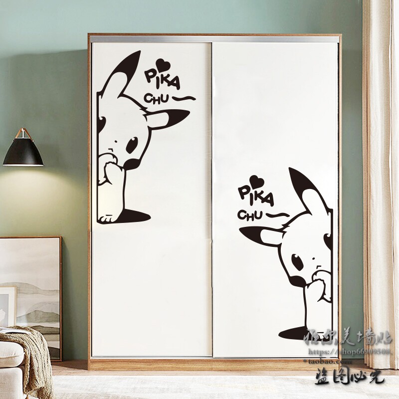 Pikachu wall sticker room bedroom set cartoon cute picture mirror decoration wardrobe shoe cabinet creative sticker