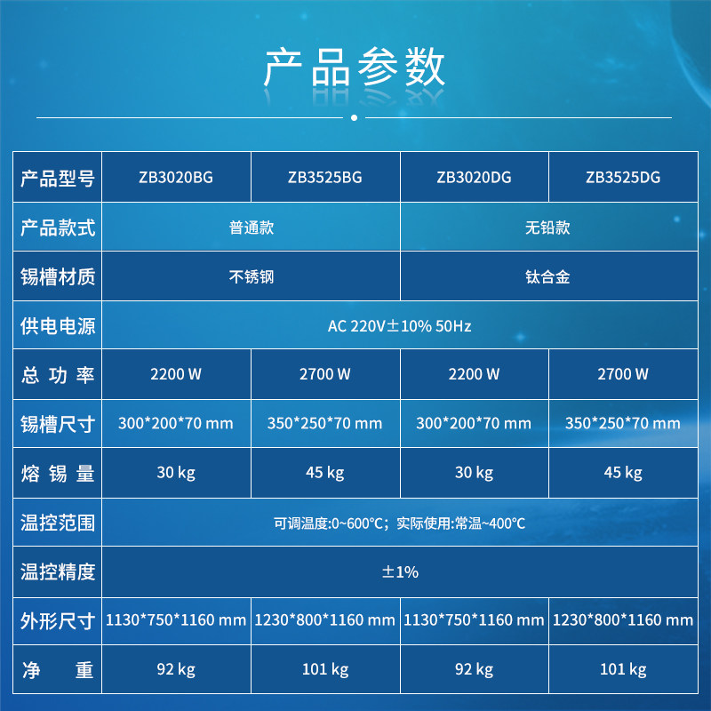 ZB3020BG (common) ZB3525BG (common) ZB3020DG (unleaded) ZB3525DG (lead-free) ZB3020BG fully automatic immersion