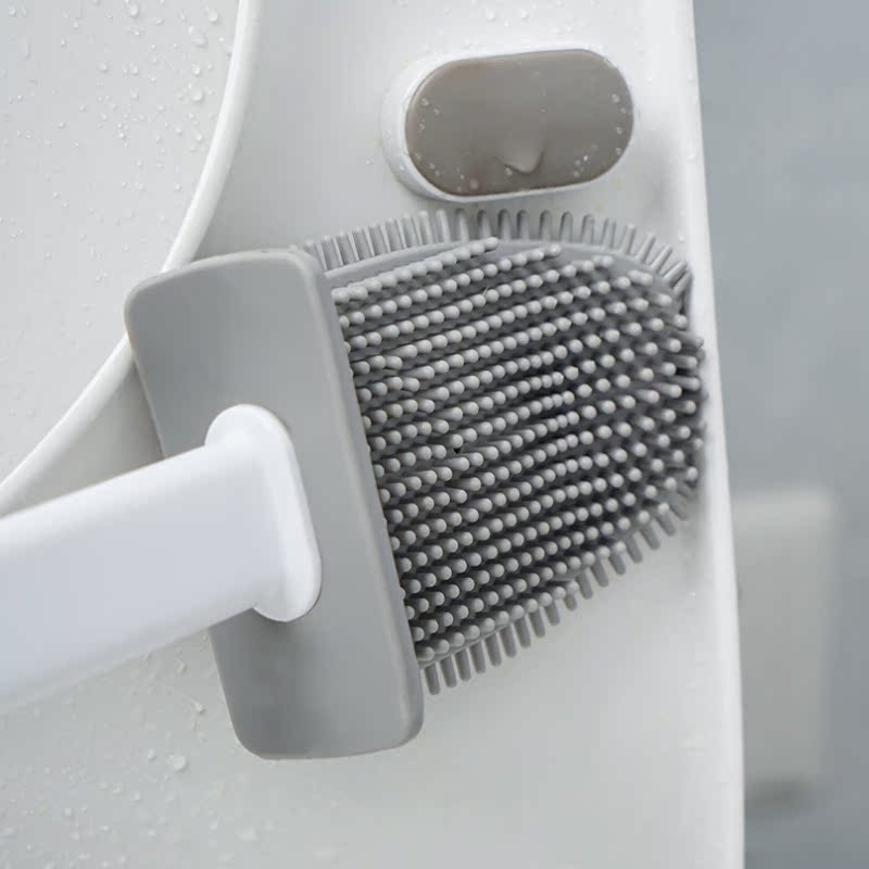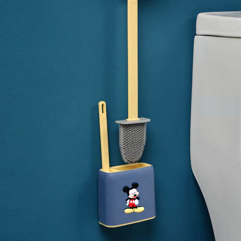 Wall-mounted silicone toilet brush home without dead ends cartoon long handle toilet brush cleaning toilet artifact cleaning set